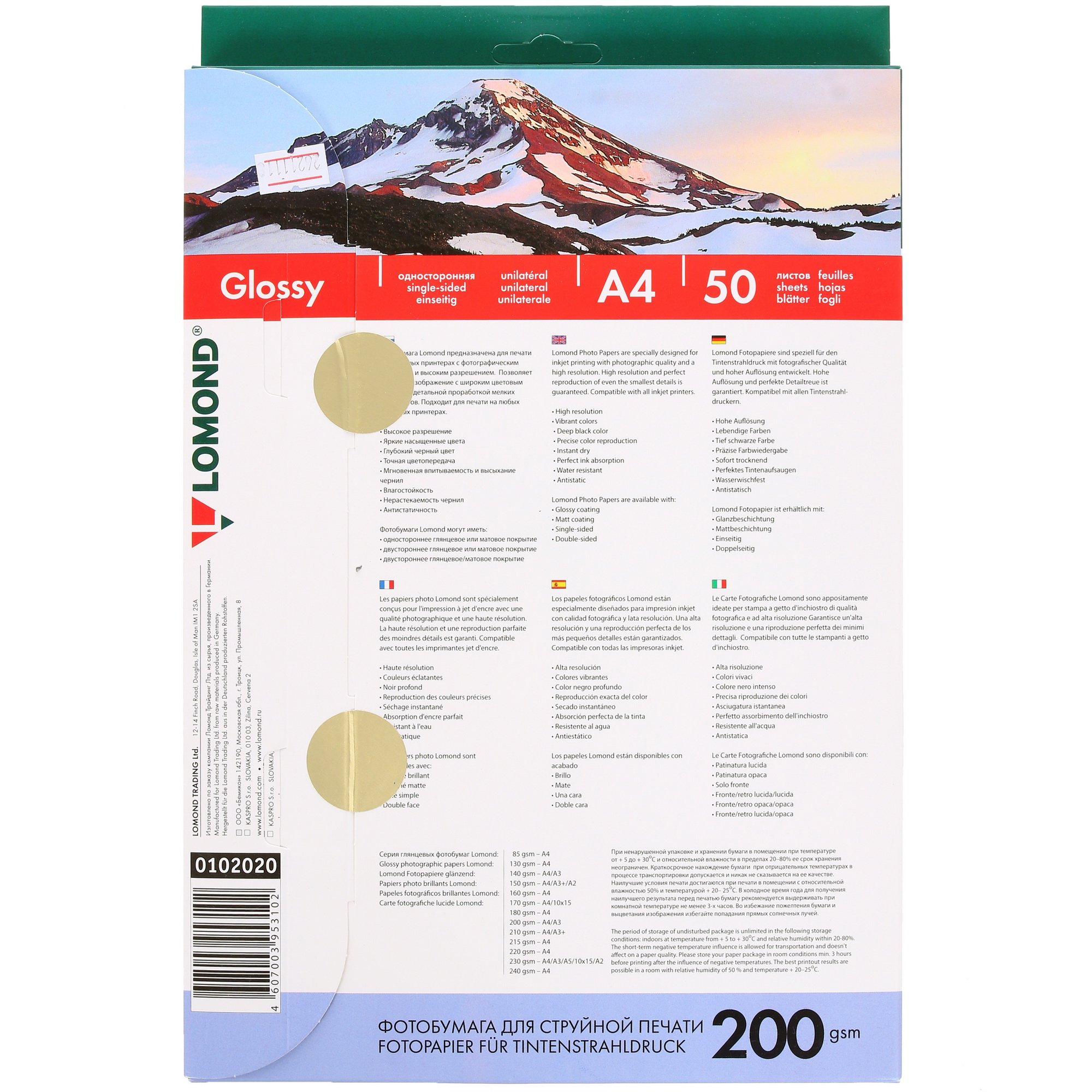Фотобумага Lomond 0102020 стала обладательницей блестящей глянцевой поверхности, которая наилучшим образом передаст красочность и яркость отпечатанного снимка с множеством цветовых градаций и оттенков. По своей структуре бумага с глянцевым покрытием более всего соответствует фотографии. Если вы хотите добиться ярких изображений с максимальной реалистичностью, обратите ваше внимание на представленный комплект фотобумаги. Лучше всего использовать с глянцевыми листами водорастворимые чернила, поскольку они проникают в сам материал бумаги, обеспечивая четкость снимка без эффекта смазанности. Они быстро впитываются и сохнут, гарантируется стойкое и насыщенное изображение.