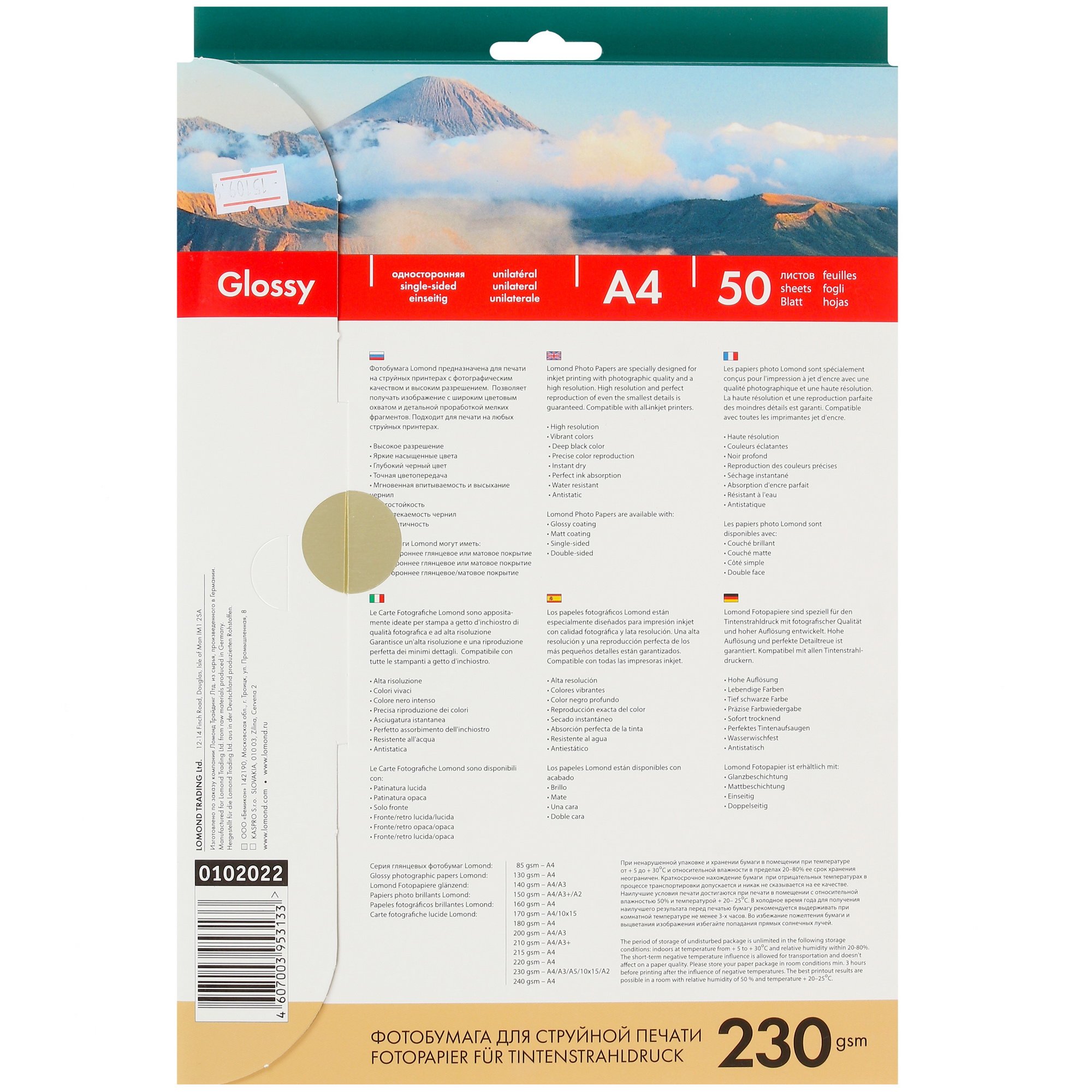 Фотобумага Lomond 0102022 A4/230г/м2/50л./белый глянцевое для струйной печати