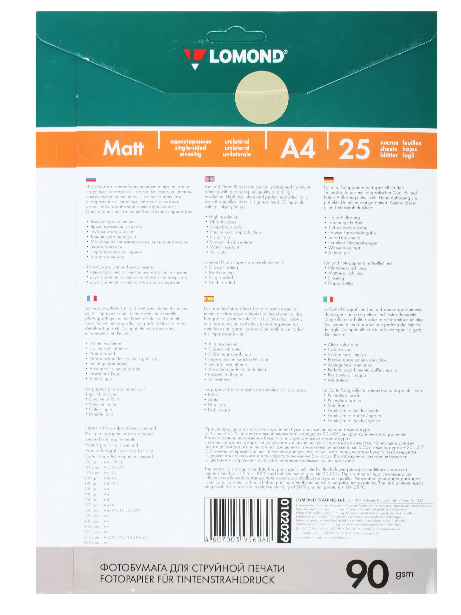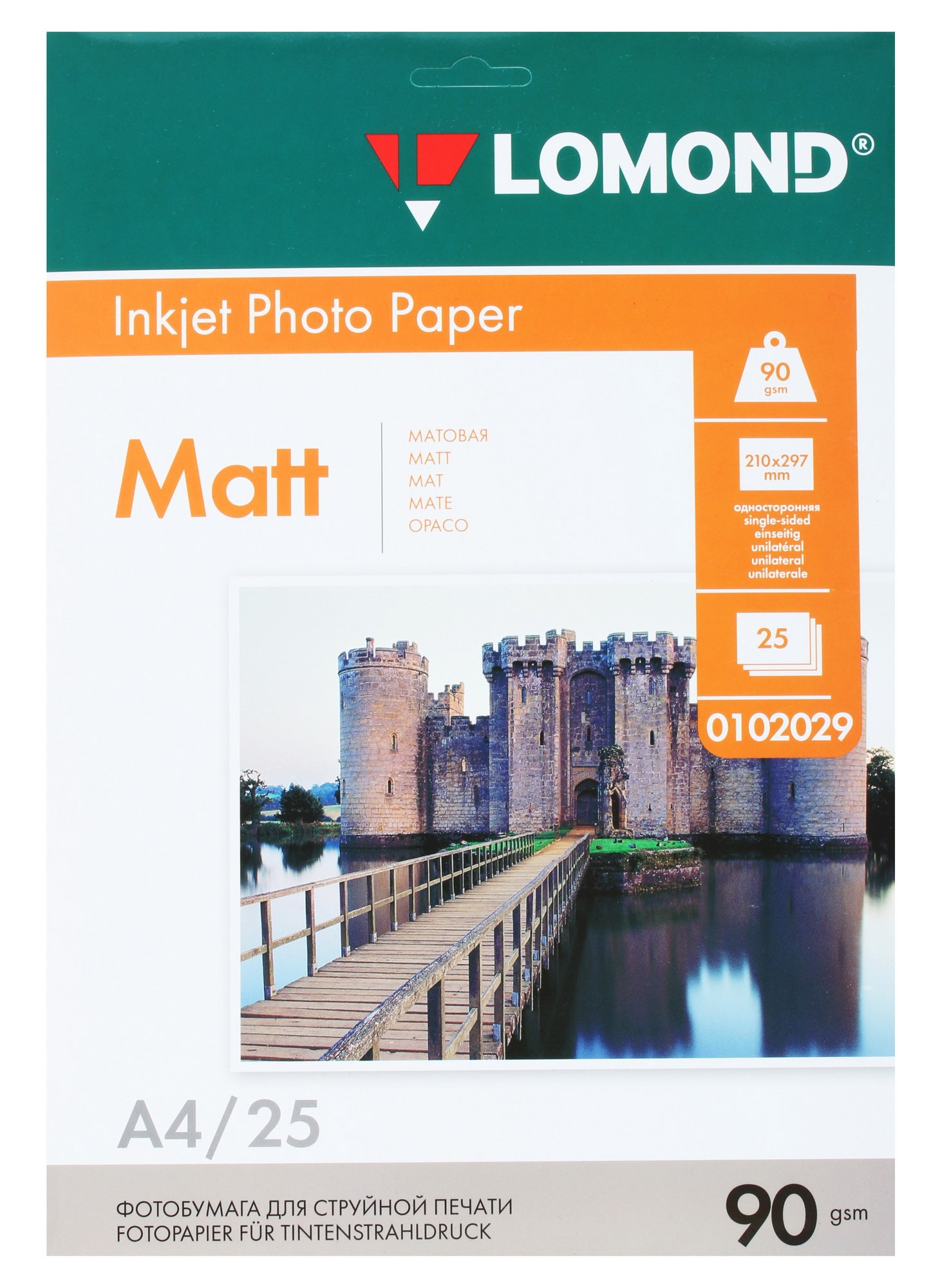 Фотобумага Lomond односторонняя матовая, 90г/м2, A4 (21X29,7)/25л. для струйной печати