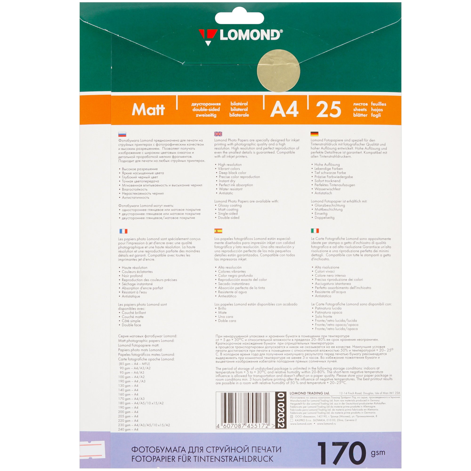 Фотобумага Lomond 0102032 A4/170г/м2/25л./белый матовое/матовое для струйной печати