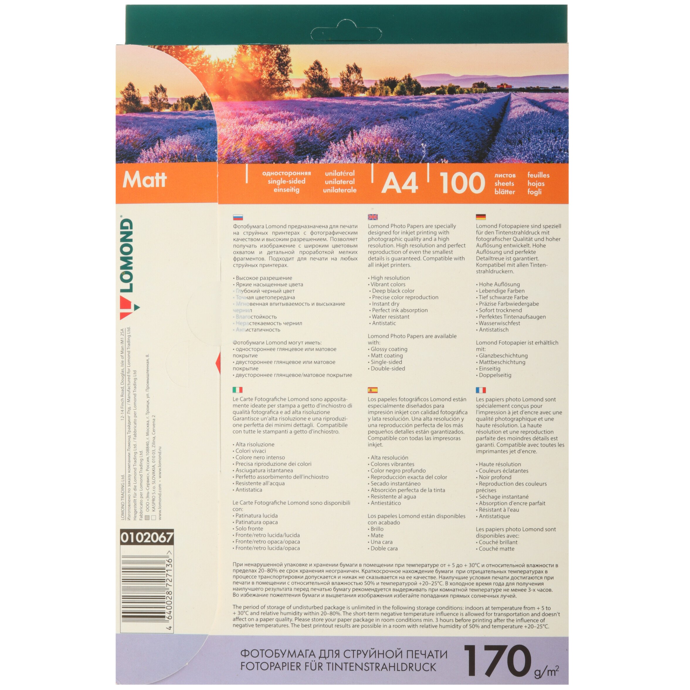 Фотобумага Lomond 170 г/м2 А4 односторонняя матовая 100 л.