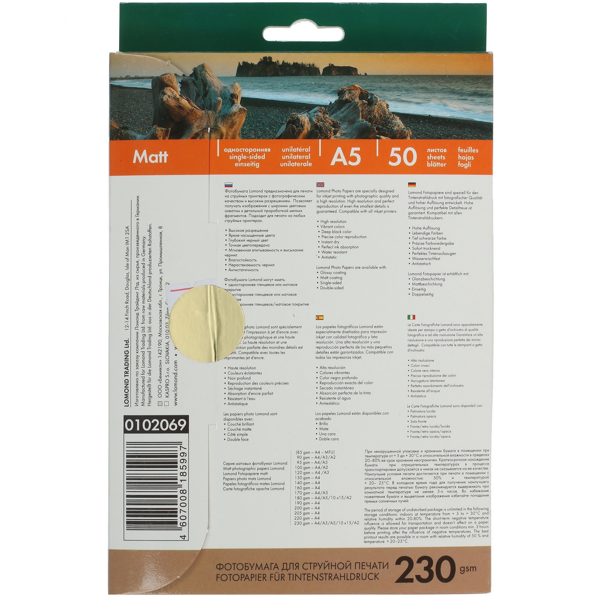 Фотобумага Lomond 0102069 A5/230г/м2/50л./белый матовое для струйной печати