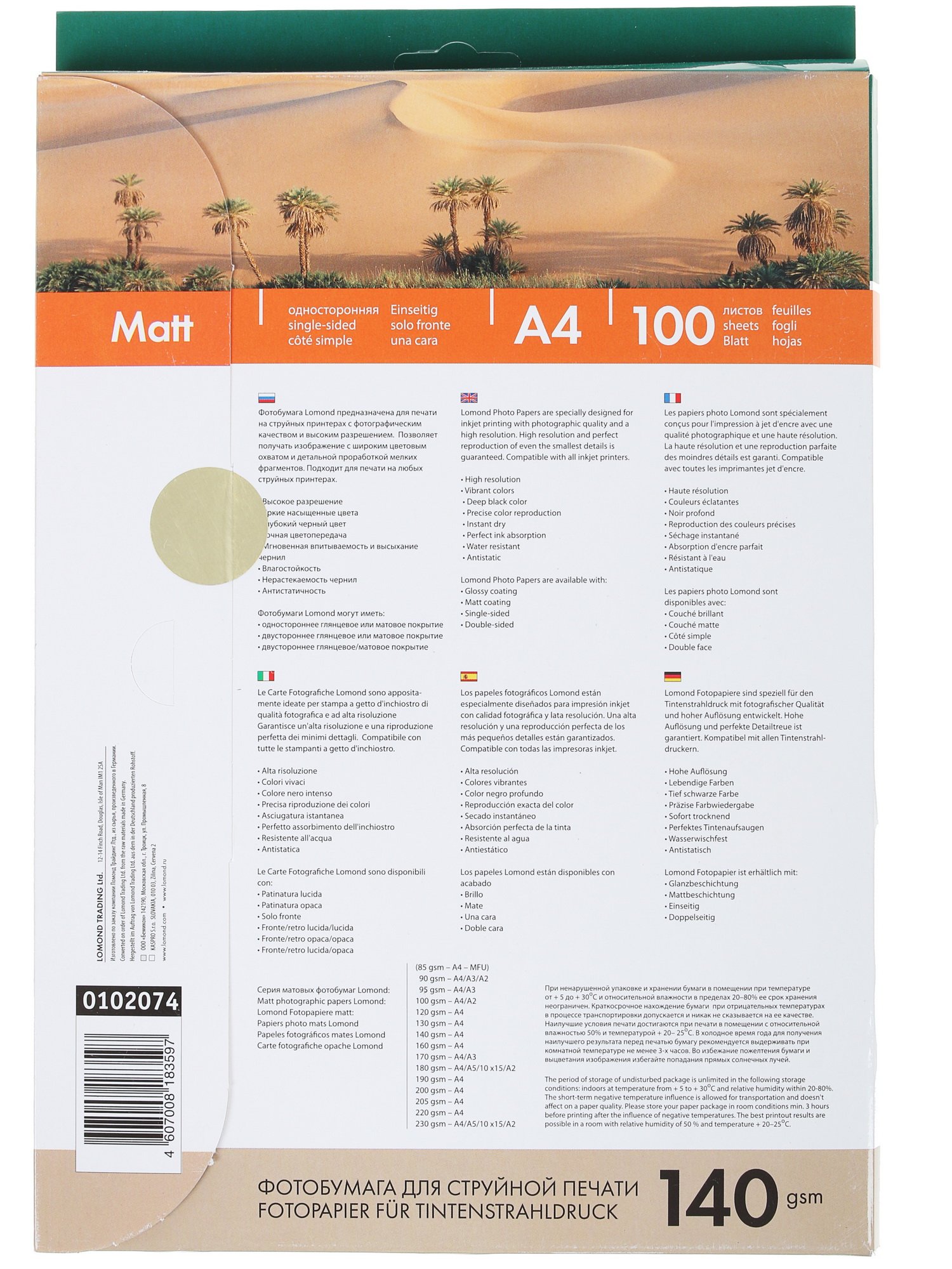 Фотобумага Lomond односторонная матовая, 140г/м2, A4(21x29)/100л.