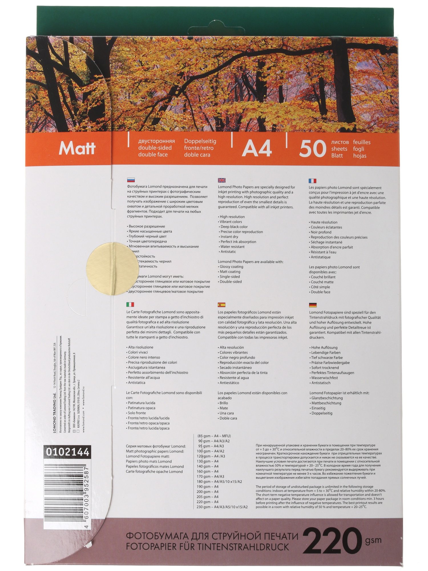 Lomond 0102144 – белая матовая бумага. Она подойдет для печати различных материалов, в том числе рекламного содержания. Оттенки мягкие, цвета хорошо передаются. Удается перенести все, даже самые мелкие детали.