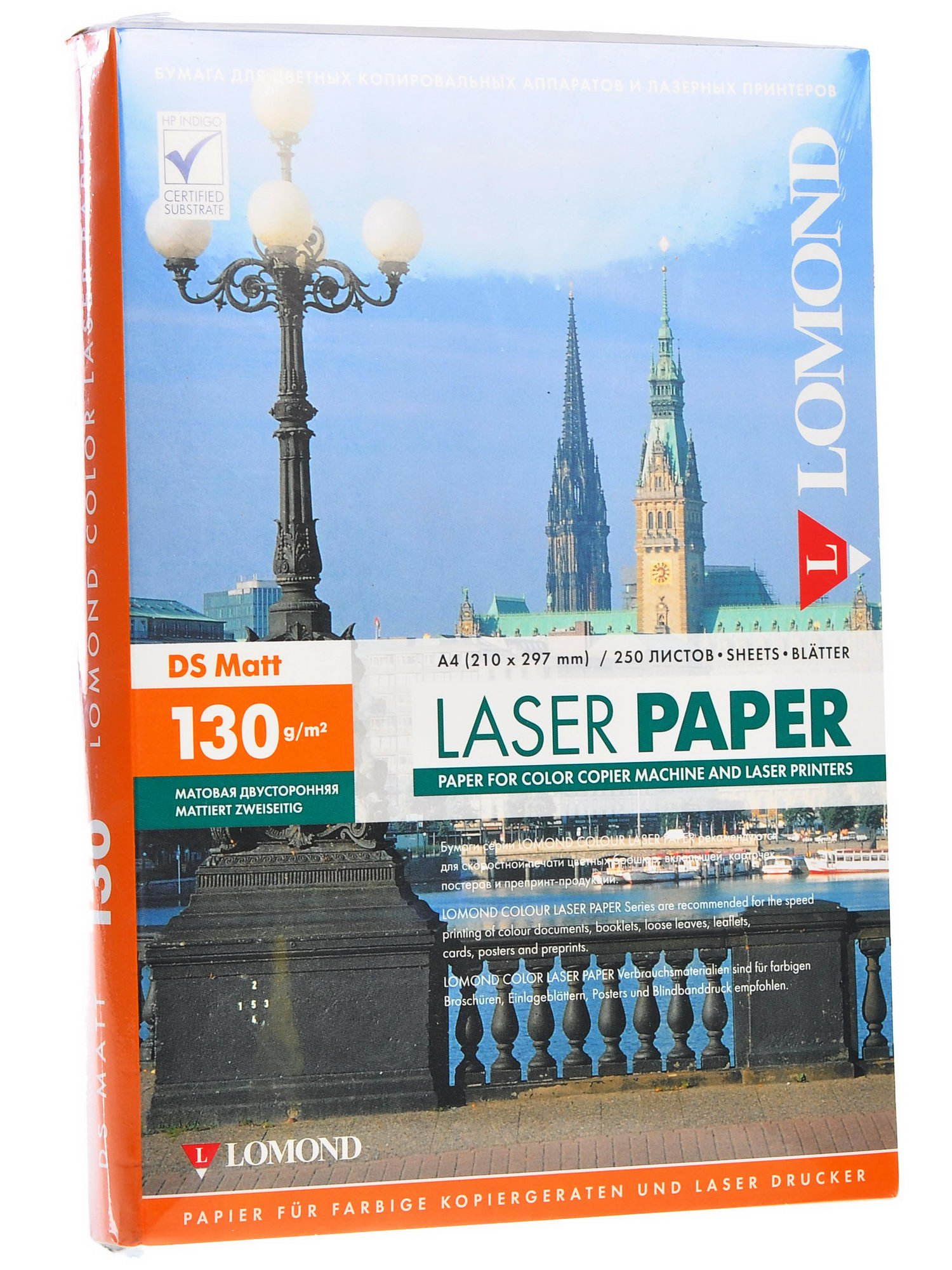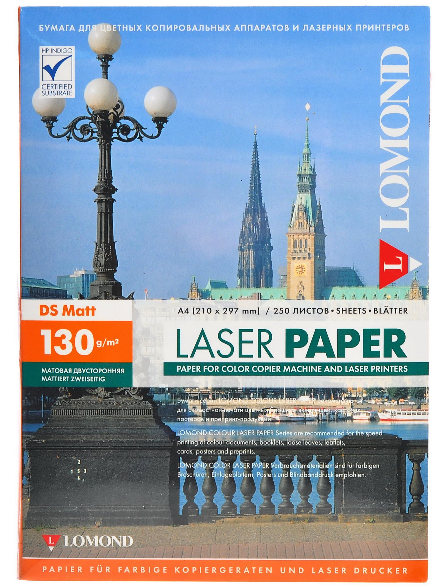 Lomond 0300542 имеет уникальное многослойное покрытие, а также обладает многофункциональностью назначения, обеспечивая превосходную адгезию тонера. В упаковке содержится 250 листов формата А4. Плотность бумаги – 130 г/м².