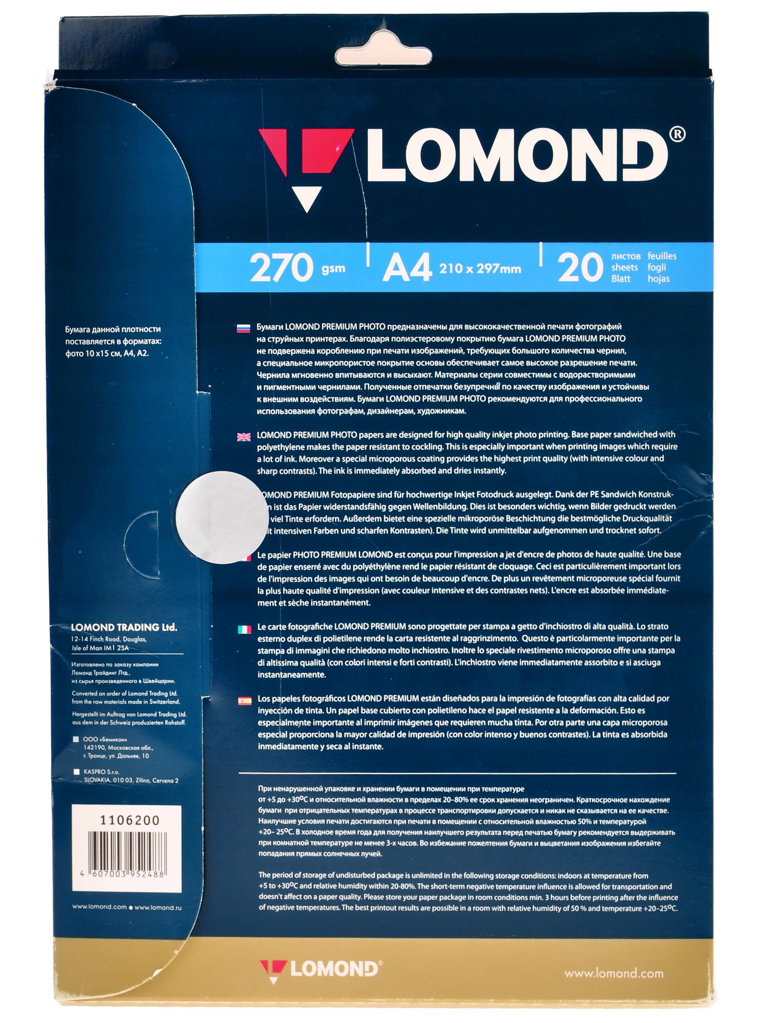 Фотобумага Lomond 1106200 A4/270г/м2/20л./белый атласное для струйной печати