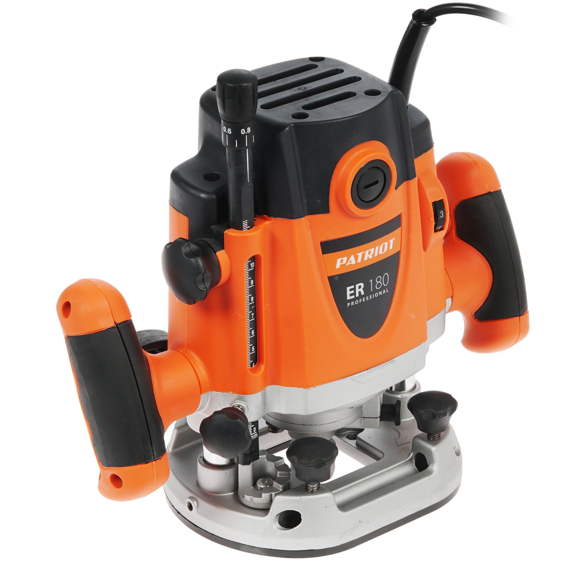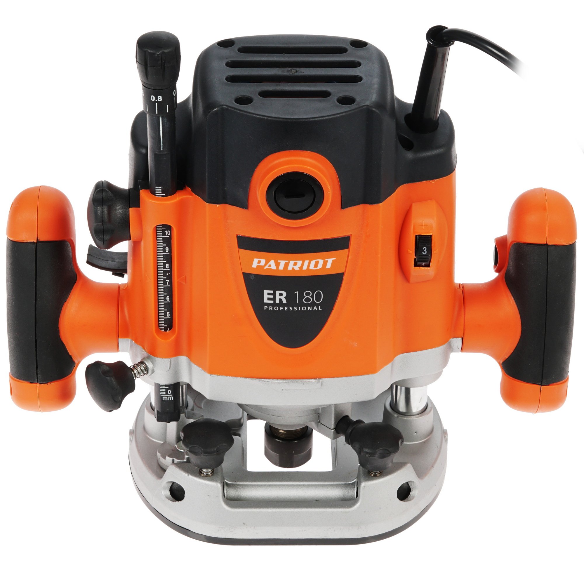 Фрезер Patriot ER 180 действует при глубине 6 см и использовании цанги на 6, 8 и 12 мм. Оборудование обладает мощностью и предельной рабочей скоростью 23500 об/мин. Скоростной режим можно регулировать вручную. Также система дополняется параллельным упором и ограничителем, что делает работу более аккуратной и безопасной.