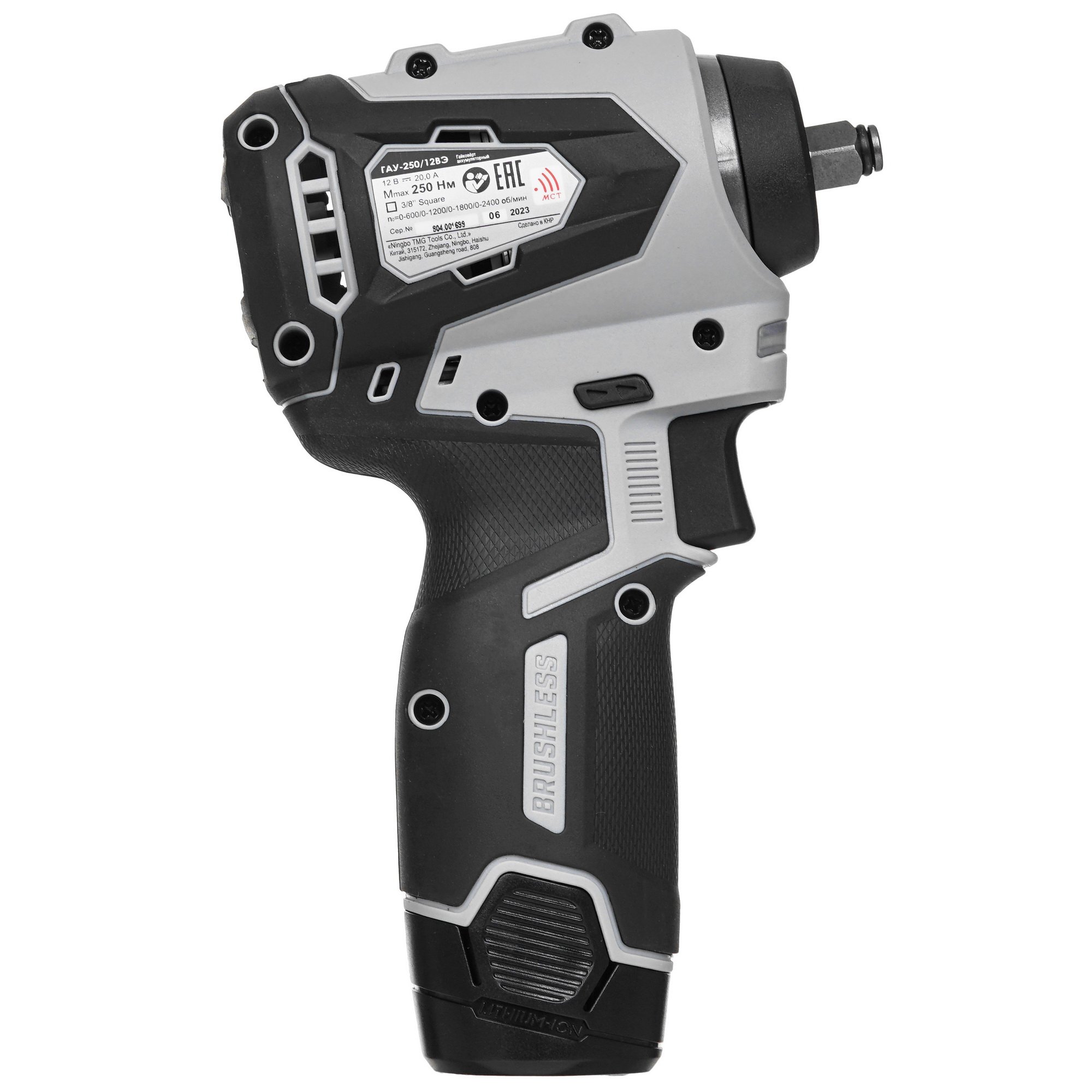 Интерскол ГАУ-250/12ВЭ весом 1 кг удобно удерживать в одной руке за счет отсутствия отдачи в ударном режиме. Оснастка фиксируется в квадратном патроне размером 3/8" и совершает до 2400 об/мин. Регулировка скорости поможет настроить гайковерт в зависимости от сложности и размера крепежа. Встроенная лампа с рассеивателем позволяет работать в слабоосвещенных местах.