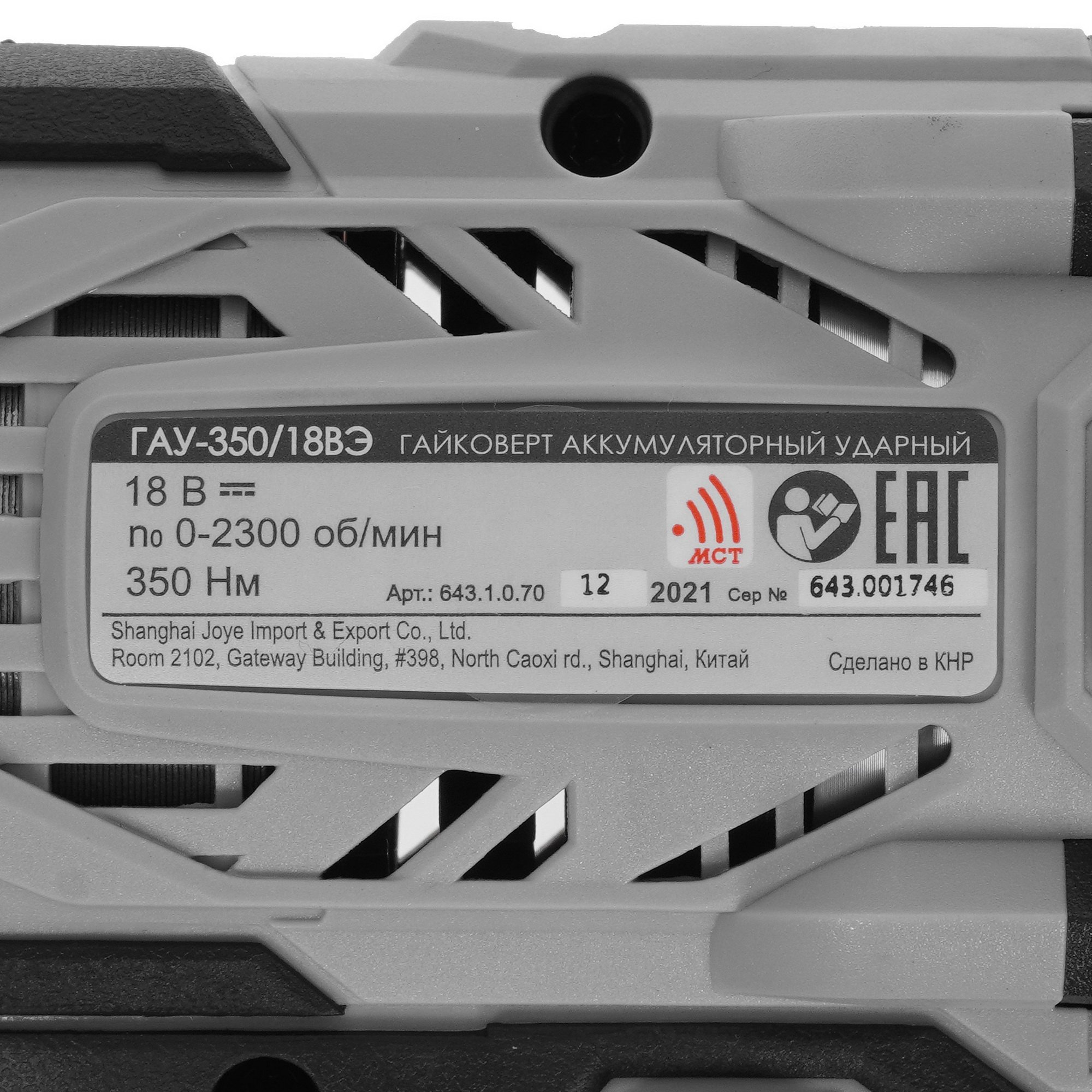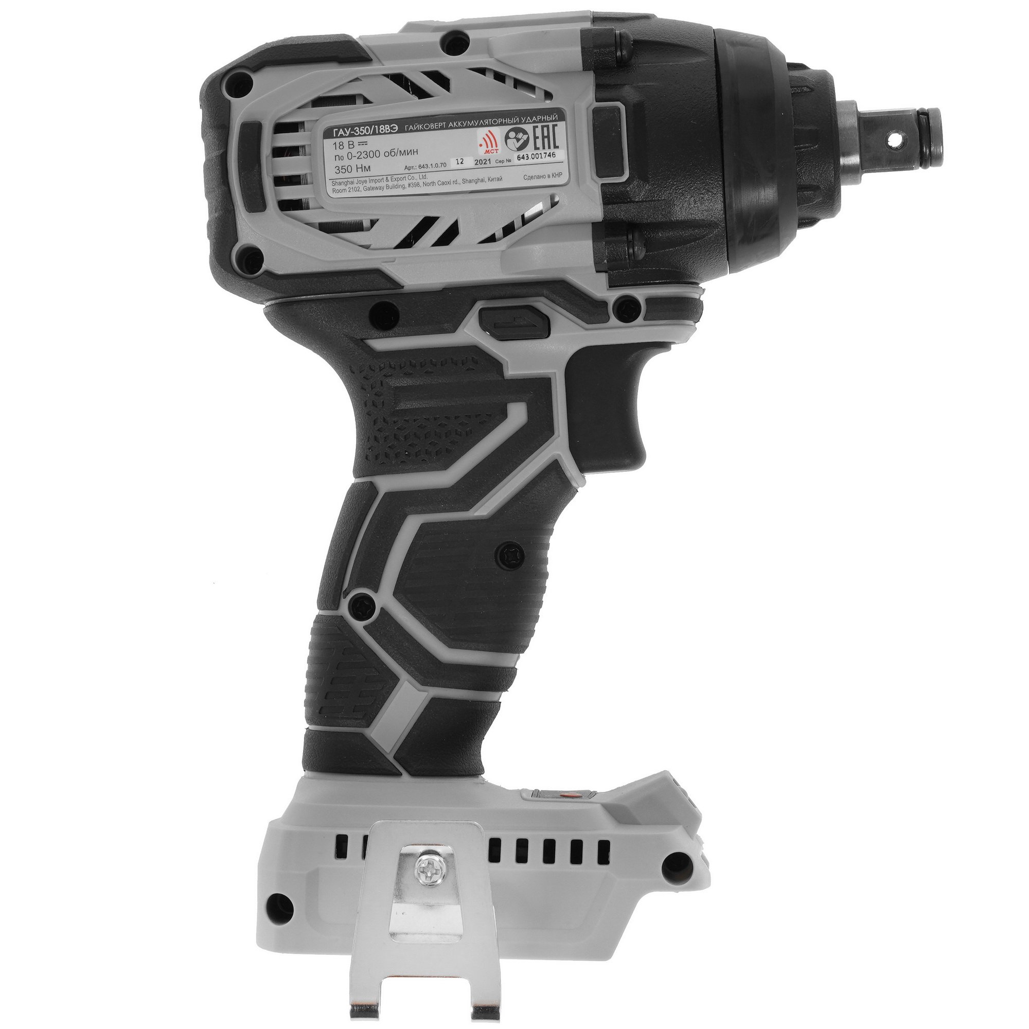 Гайковерт Интерскол ГАУ-350/18ВЭ поставляется без аккумулятора и зарядного устройства. Вы сможете задействовать совместимые батарею и ЗУ от других аккумуляторных инструментов Интерскол. Преимущества рукоятки гайковерта – эргономичная форма и прорезиненное покрытие. Несмотря на высокий уровень производительности, инструмент не является тяжелым: его масса составляет 1.6 кг. Это способствует удобству работы на высоте и в условиях ограниченного пространства.