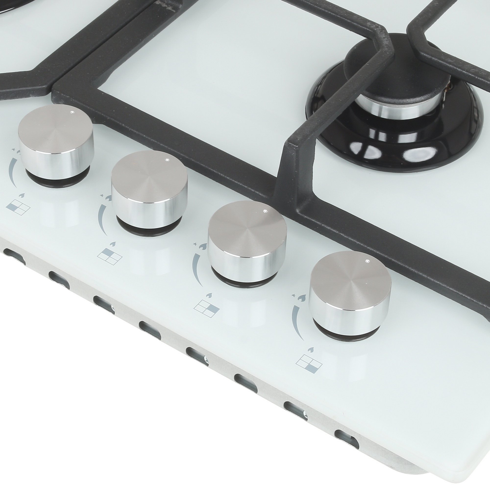 4 конфорки газовой варочной поверхности LEX GVG 640-1 WH выполнены из закаленного стекла, надежного и долговечного. Одна из конфорок является конфоркой «тройная корона» повышенной мощности в 3.5 кВт, на которой вы сможете готовить на большой по диаметру посуде, и результат не заставит себя ждать. Дополняется набор 2 конфорками со стандартной мощностью, и еще одна является экономичной, с малым расходованием газа. Все они оснащены газ-контролем на случай возможной утечки. Активация LEX GVG 640-1 WH происходит посредством электроподжига, который встроен в поворотную ручку.