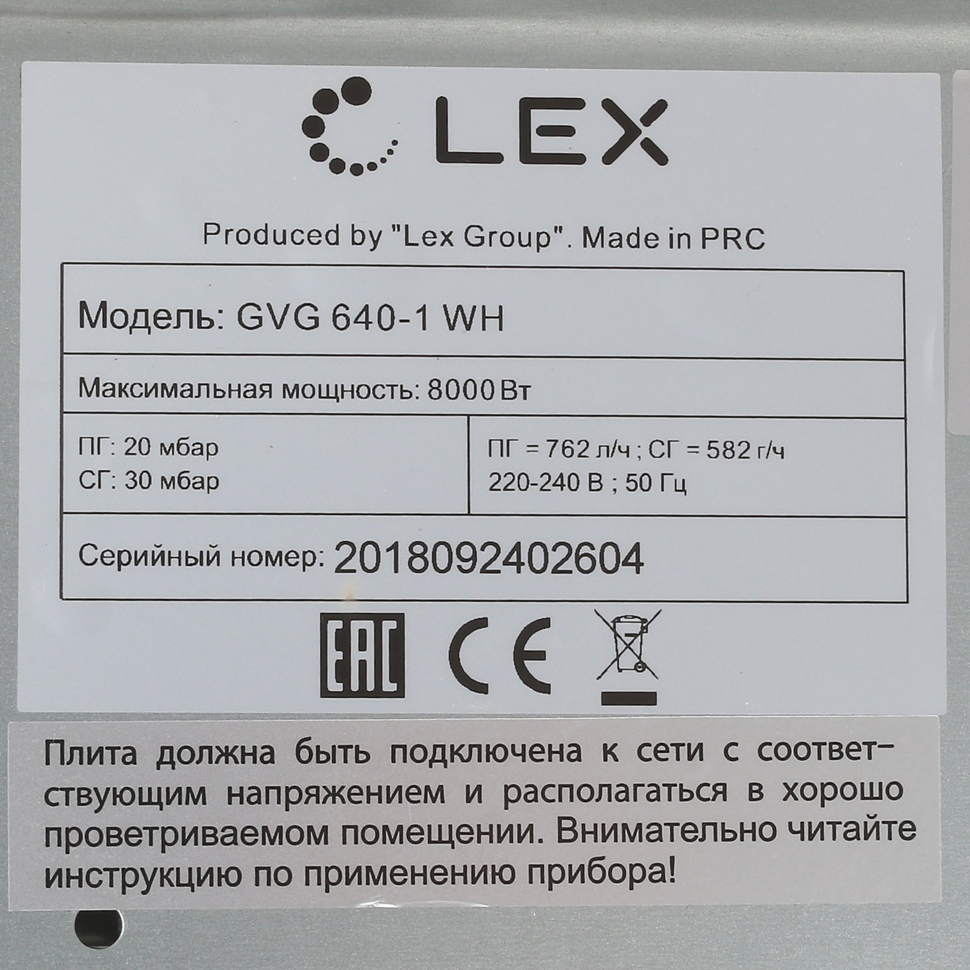 Газовая варочная панель LEX GVG 640-1 WH белый