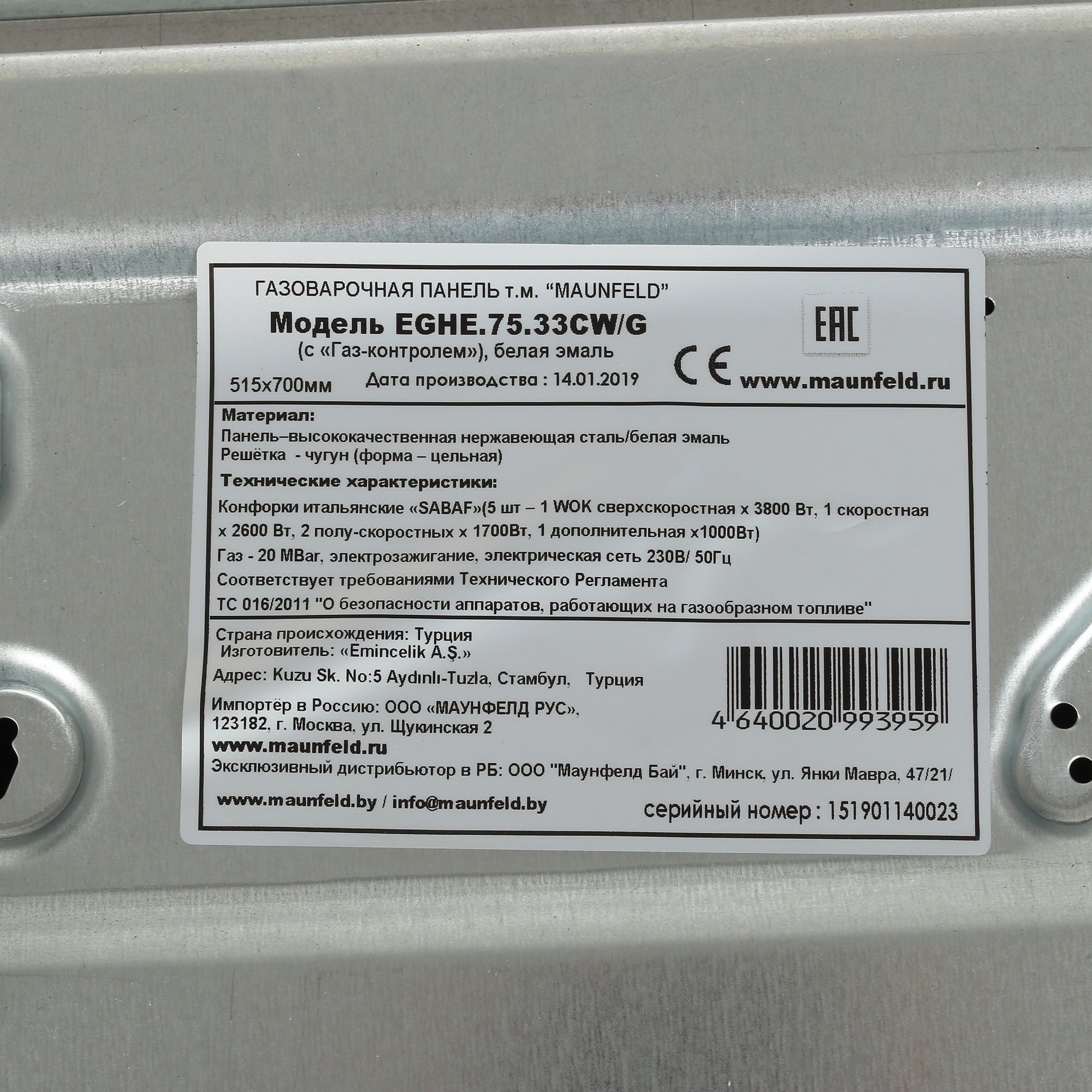 Газовая варочная панель Maunfeld EGHE.75.33CW/G