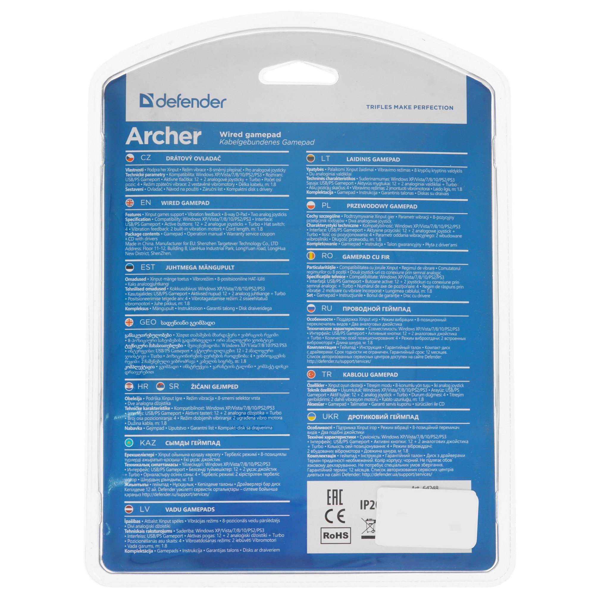 Геймпад Defender Archer подходит для компьютеров, а также Sony PlayStation 2 и 3 поколений. Питание осуществляется от порта USB. Данная модель поддерживает режим XInput для автоматической настройки и готов к работе со всеми играми на Windows 7/8/10. Два аналоговых джойстика дают возможность играть, например, в футбольные симуляторы.