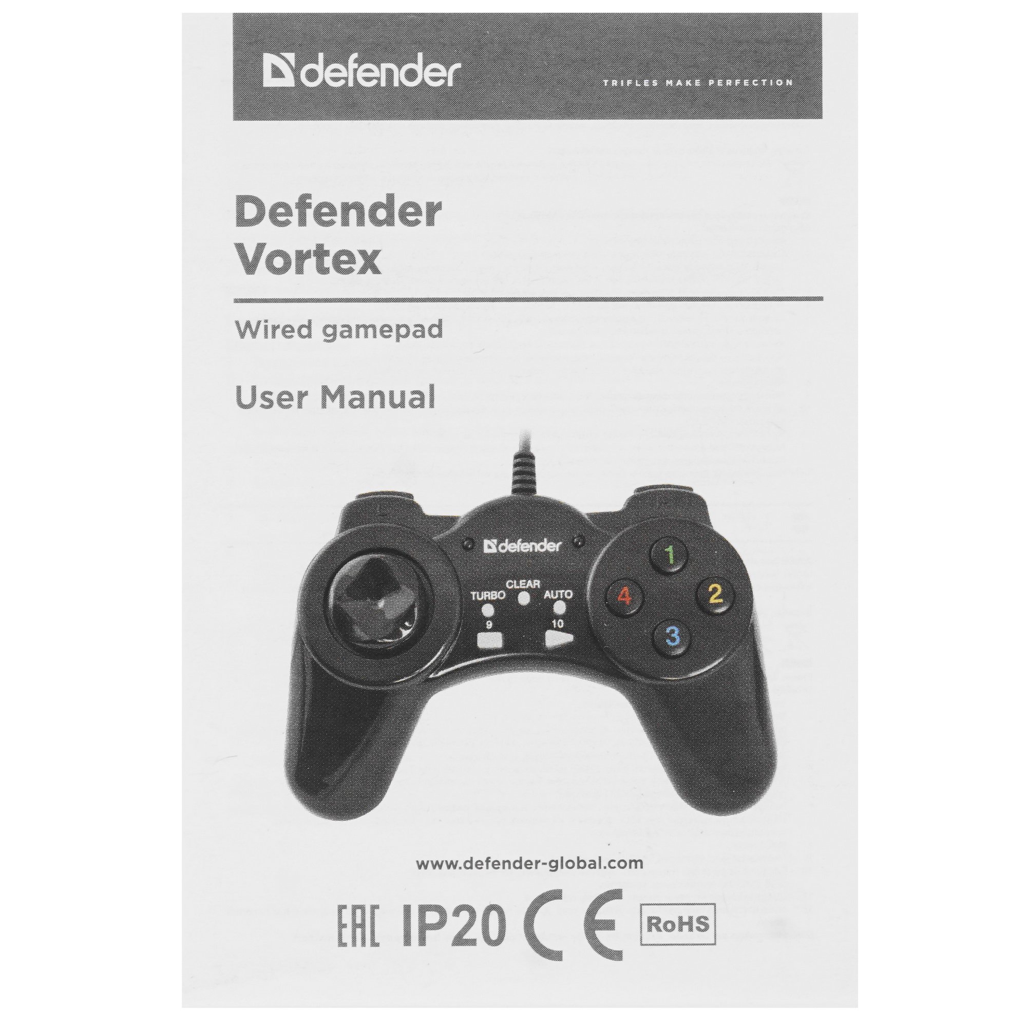 С проводным геймпадом Defender Vortex, предназначенным для PC, любая игра станет интересной и увлекательной. Геймпад оснащен интерфейсом USB. Defender Vortex имеет достаточно длинный кабель (1.5 м). Устройство в стильном и эргономичном пластиковом корпусе выполнено в классическом стиле. Корпус выдерживает внушительные эксплуатационные нагрузки и является ударопрочным. Клавиши расположены таким образом, чтобы игроку было максимально удобно.