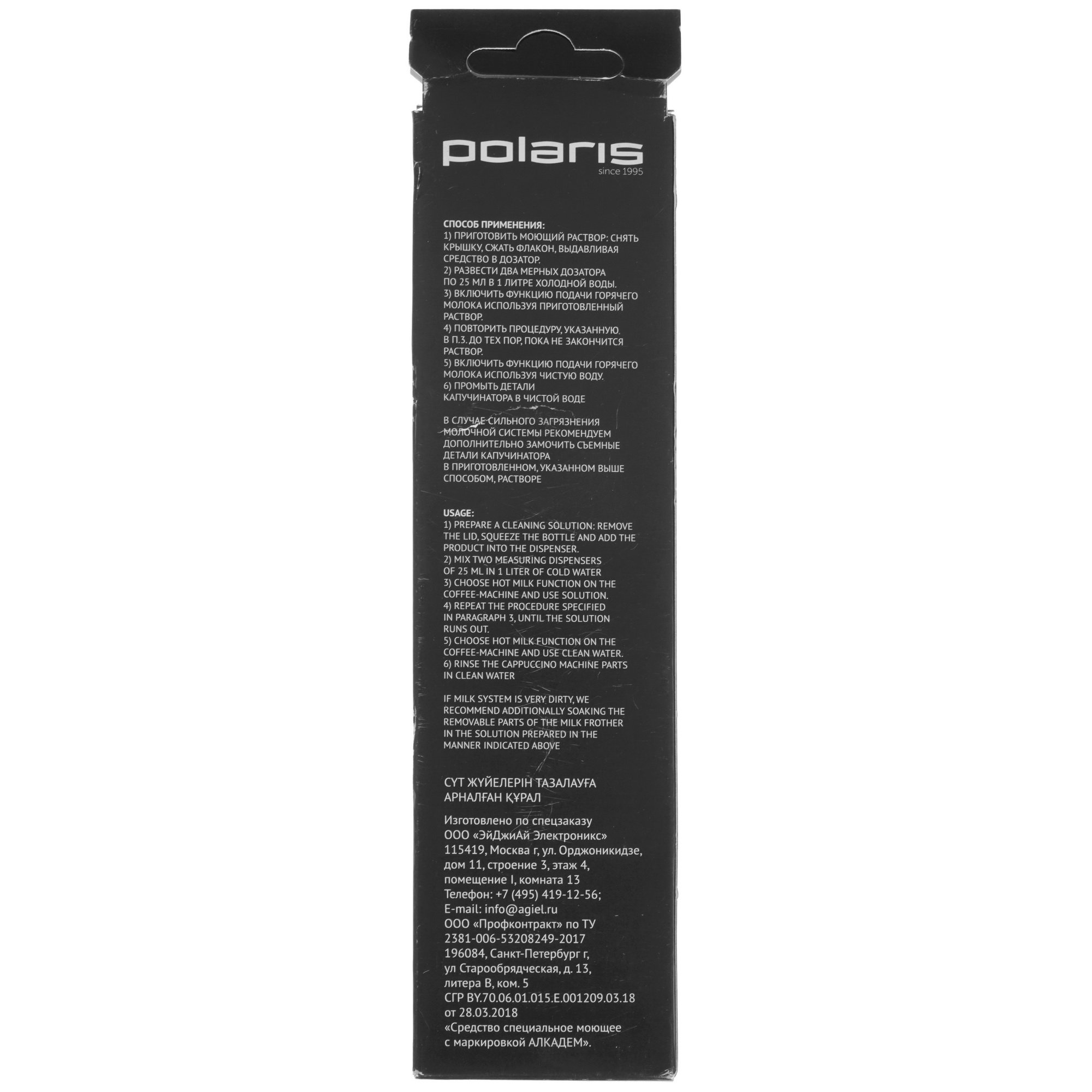 Жидкость для очистки молочной системы Polaris PCDL 1007 ECO представлена в виде концентрата, поставляемого в биоразлагаемой бутылке объемом 250 мл. С помощью этого средства можно профессионально очистить молочную систему в кофемашинах и кофеварках с автоматическим капучинатором. Формула, включающая в себя соли натрия, комплексообразователи, полиакрилаты и неионогенные ПАВ, эффективно удаляет любые органические загрязнения и молочный камень. Использовать чистящее средство Polaris PCDL 1007 ECO можно с оборудованием любого производителя.