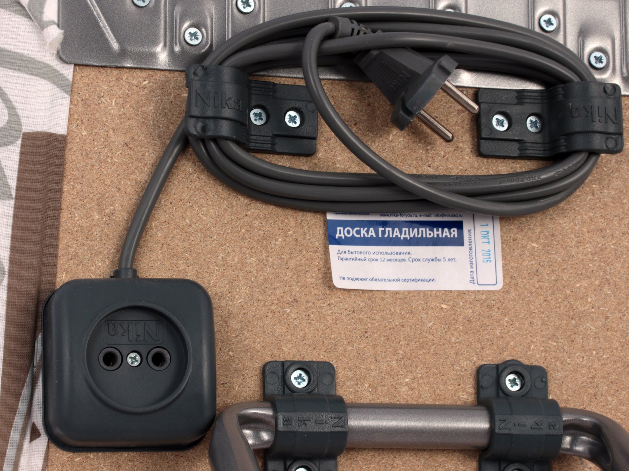 НИКА "Белль-классик 3" производилась из высокопрочных материалов, например, из ДСП, которое послужило материалом для основы. Металлические ножки обеспечат устойчивость. В конструкции гладильной доски присутствует компактный подутюжник, а также удобный удлинитель для утюга.