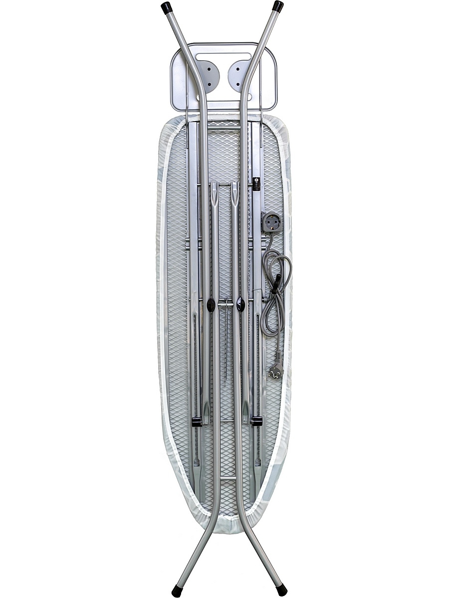 Электрическая розетка на доске сделает процесс глажения ещё более удобным, так же как и удобная подставка для утюга. Регулируйте доску по высоте так, как вам будет удобно - доска позволяет устанавливать удобный уровень.