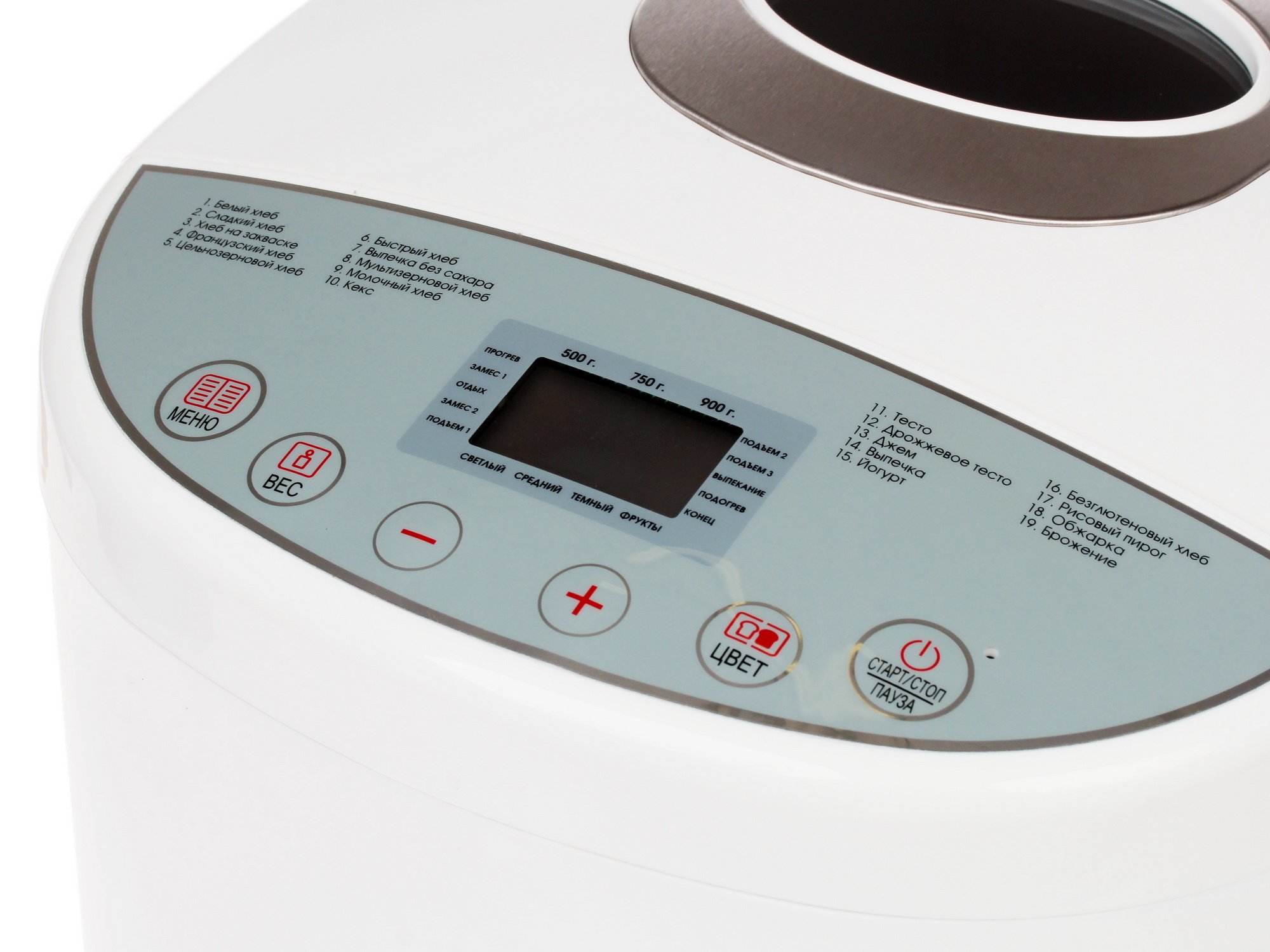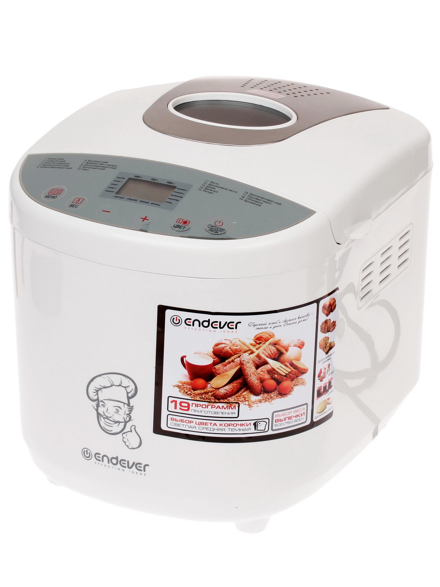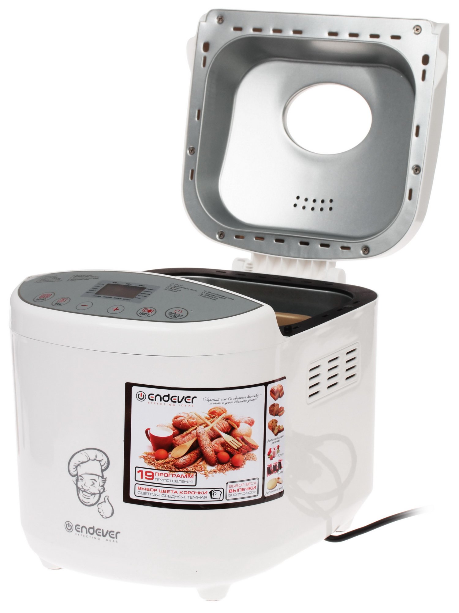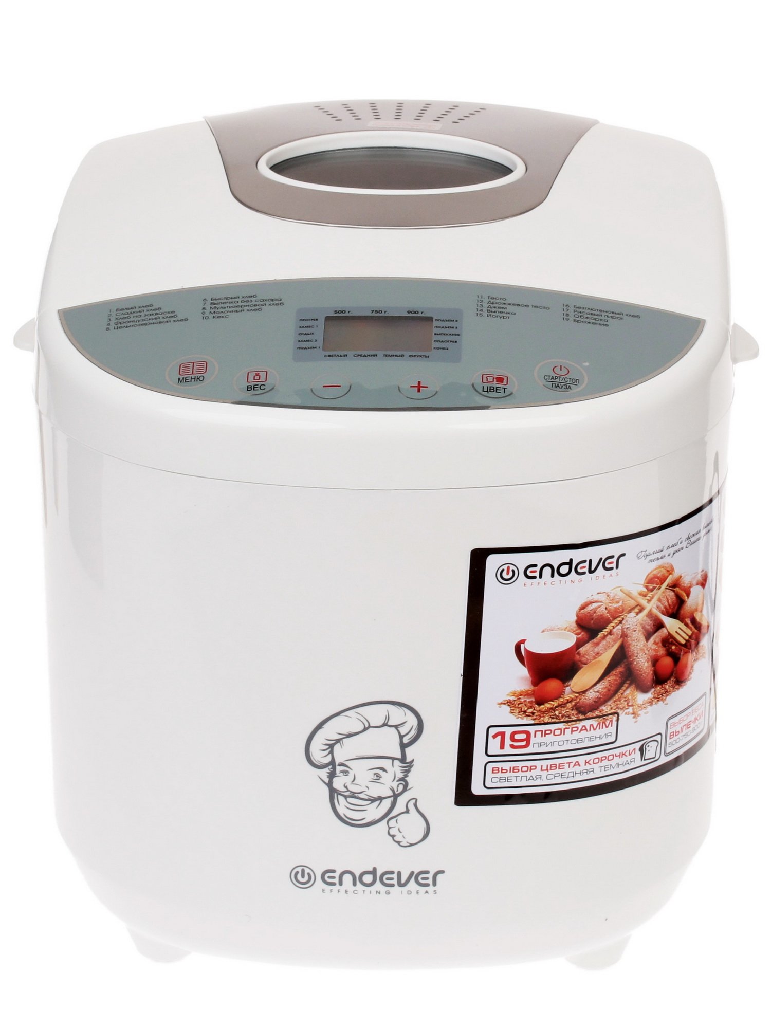 Хлебопечь Endever Skyline MB-51 произведена из пластика белого цвета с серыми вставками. Устройство оснащено 19 встроенными программами, среди которых предусмотрены специальные режимы для сладостей и кексов, бездрожжевой и безглютеновой выпечки, пшеничного и французского хлеба. Если Вы ограничены во времени, выберите ускоренный режим.