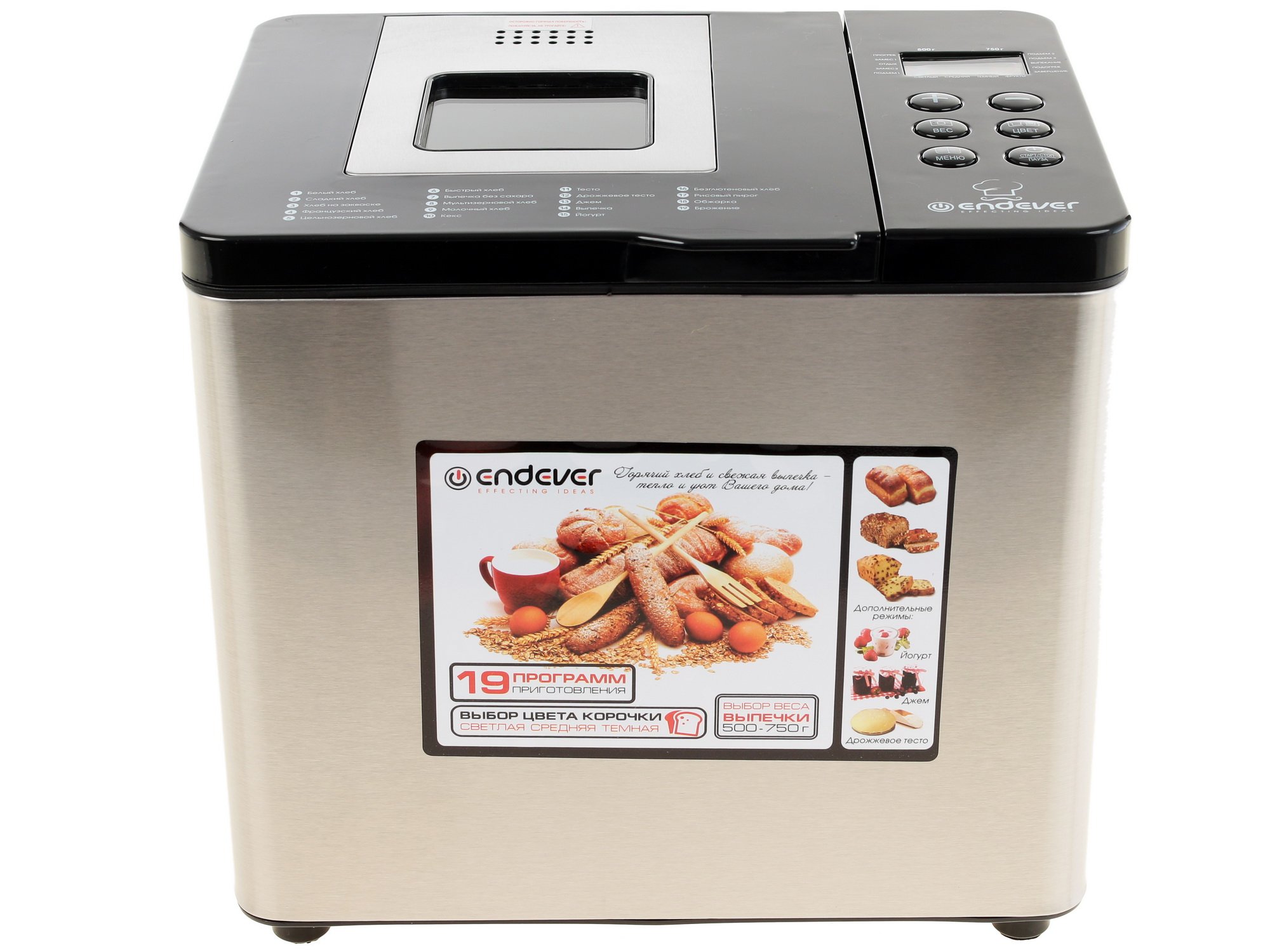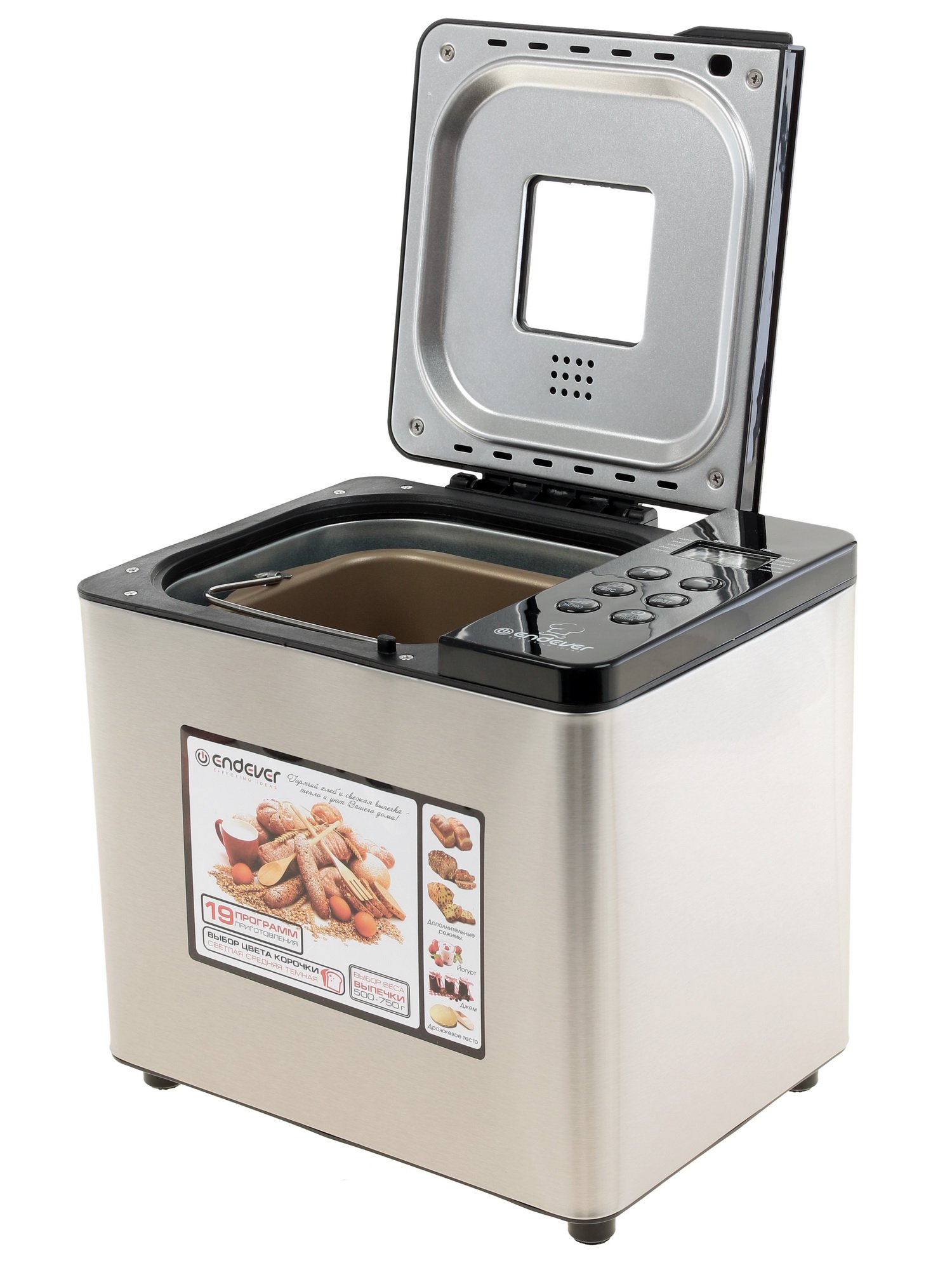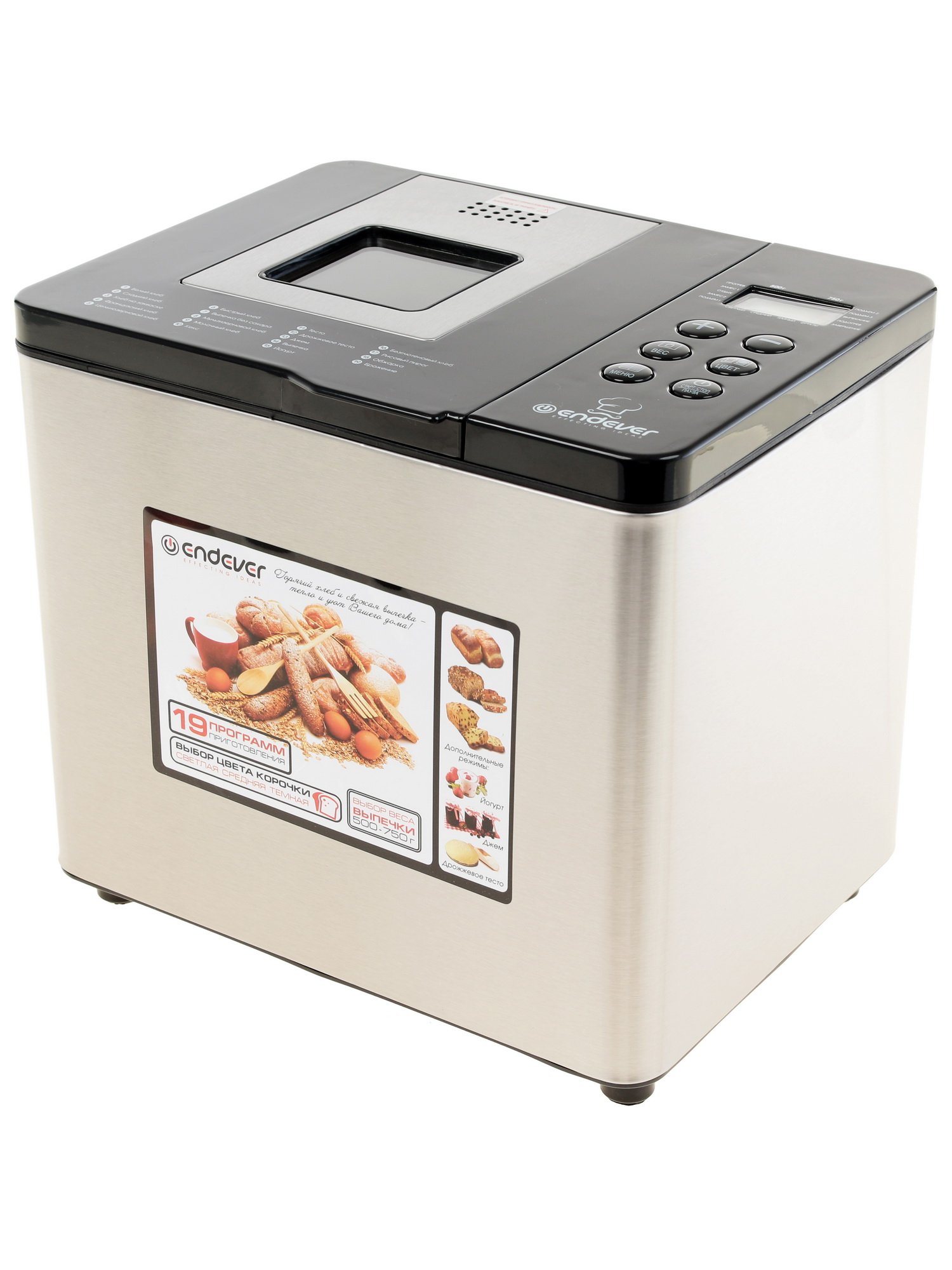 Хлебопечь Endever Skyline MB-54 представлена в стильном дизайне и имеет привлекательную серебристую расцветку. Оборудование действует с мощностью 750 Вт, весит 5.8 кг и обладает габаритами 36.5x33.5x30 см. Допускается выпечка буханки хлеба весом до 0.75 кг. Предусматривается возможность регулирования веса и выбора цвета корочки хлеба.
