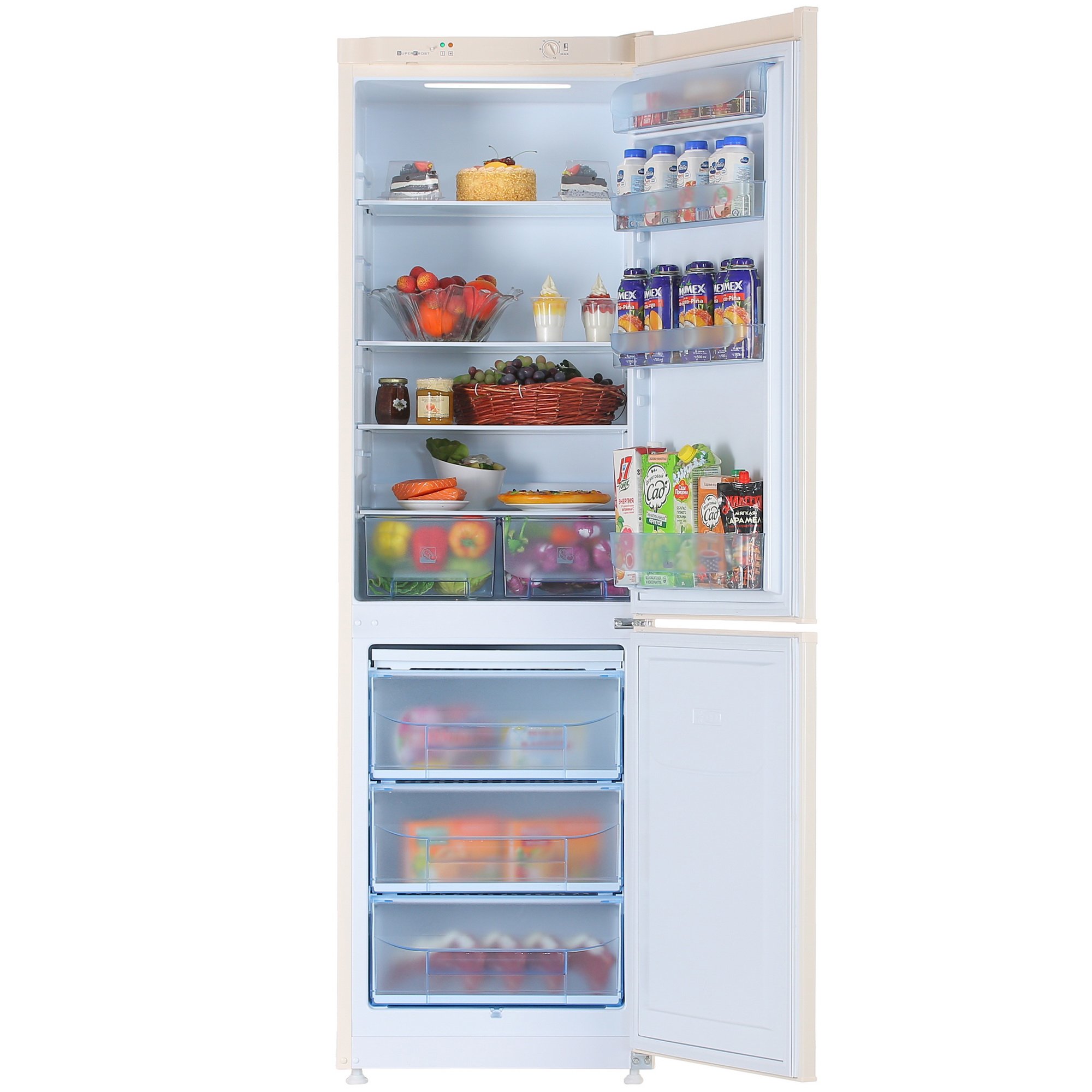 Холодильник Pozis RK-149 представлен в элегантном бежевом дизайне с полноразмерной конструкцией. Морозилка располагается снизу и вмещает 97 л. Очистка от наледи осуществляется вручную. Основной холодильный отсек на 217 л дополняется удобной капельной системой.
