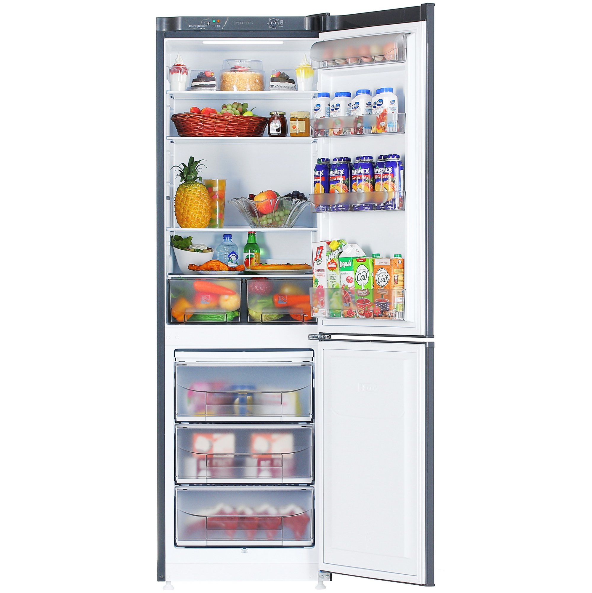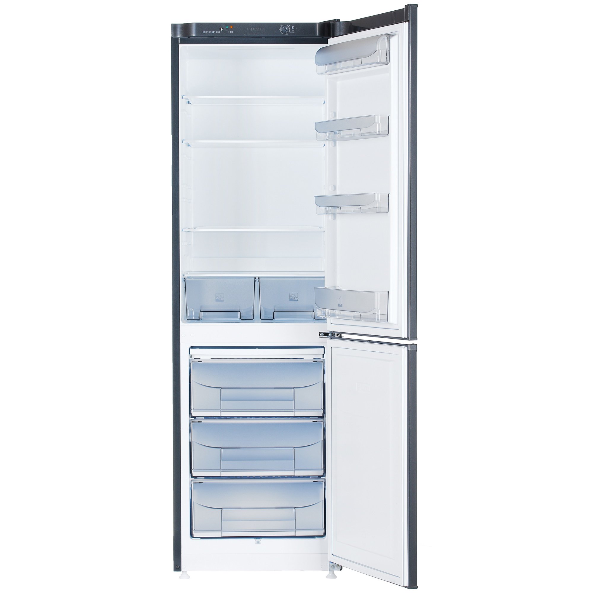 Холодильник Pozis RK-149 состоит из двух вместительных камер – холодильной (сверху) и морозильной (снизу). В холодильной камере имеются 4 полки, которые изготовлены из износостойкого стекла и могут регулироваться по высоте для оптимизации внутреннего пространства. Также предусмотрены 4 навесные полки на дверце. Морозильная камера оборудована 3 выдвижными контейнерами и режимом быстрой заморозки продуктов. Для удобства в использовании холодильник оборудован освещением на основе LED-ламп и интегрированными ручками.