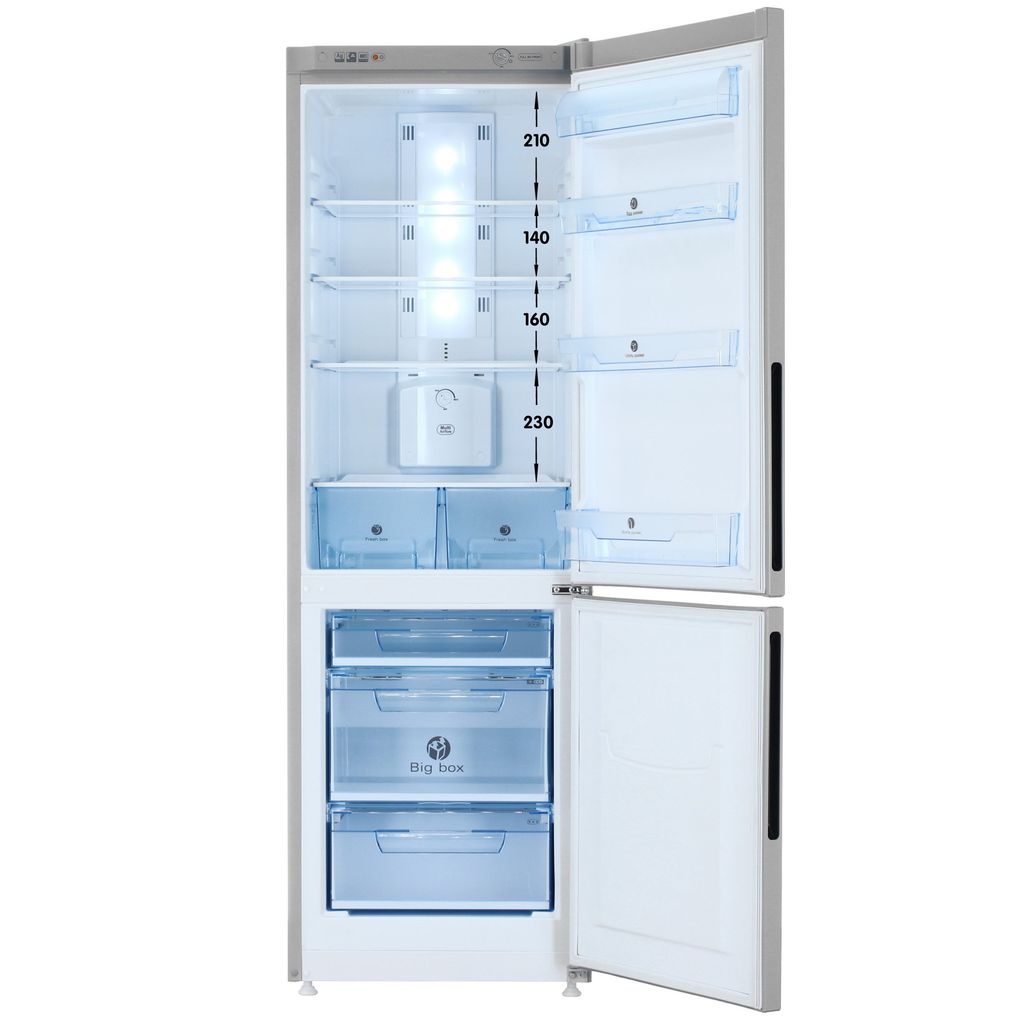 Холодильник Pozis RK FNF-170 полностью оснащен системой No Frost, что означает полное отсутствие намерзания льда и необходимости его оттаивать при уборке. При высоте 186 см он обладает полезным объемом 281 л, чего достаточно, чтобы удовлетворить потребности семьи из 3-4 человек. 68-литровое морозильное отделение расположено внизу и оборудовано 3 прозрачными пластиковыми ящиками: можно по отдельности хранить рыбу, мясо и полуфабрикаты, найти нужный пакет проще.