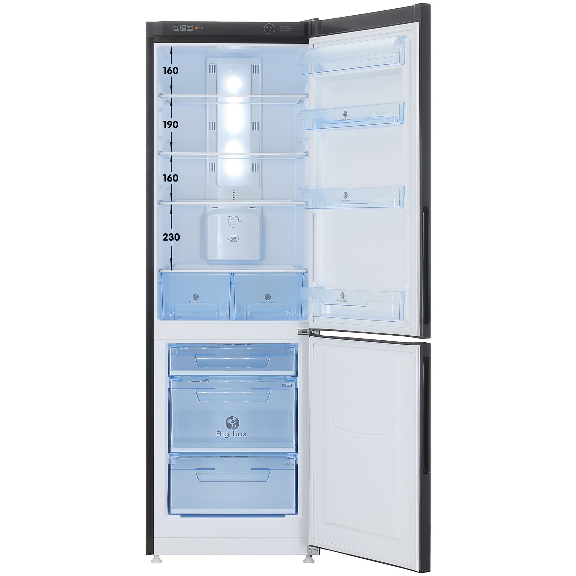 Холодильник с морозильником Pozis RK-FNF-170B объемом 281 л имеет внешнее покрытие из металла и пластика черного цвета. Технология No Frost предупреждает образование наледи на стенках отделений. Для доступа к функционалу предусмотрен поворотный переключатель. LED-освещение позволяет отслеживать остаток содержимого и находить необходимые упаковки.