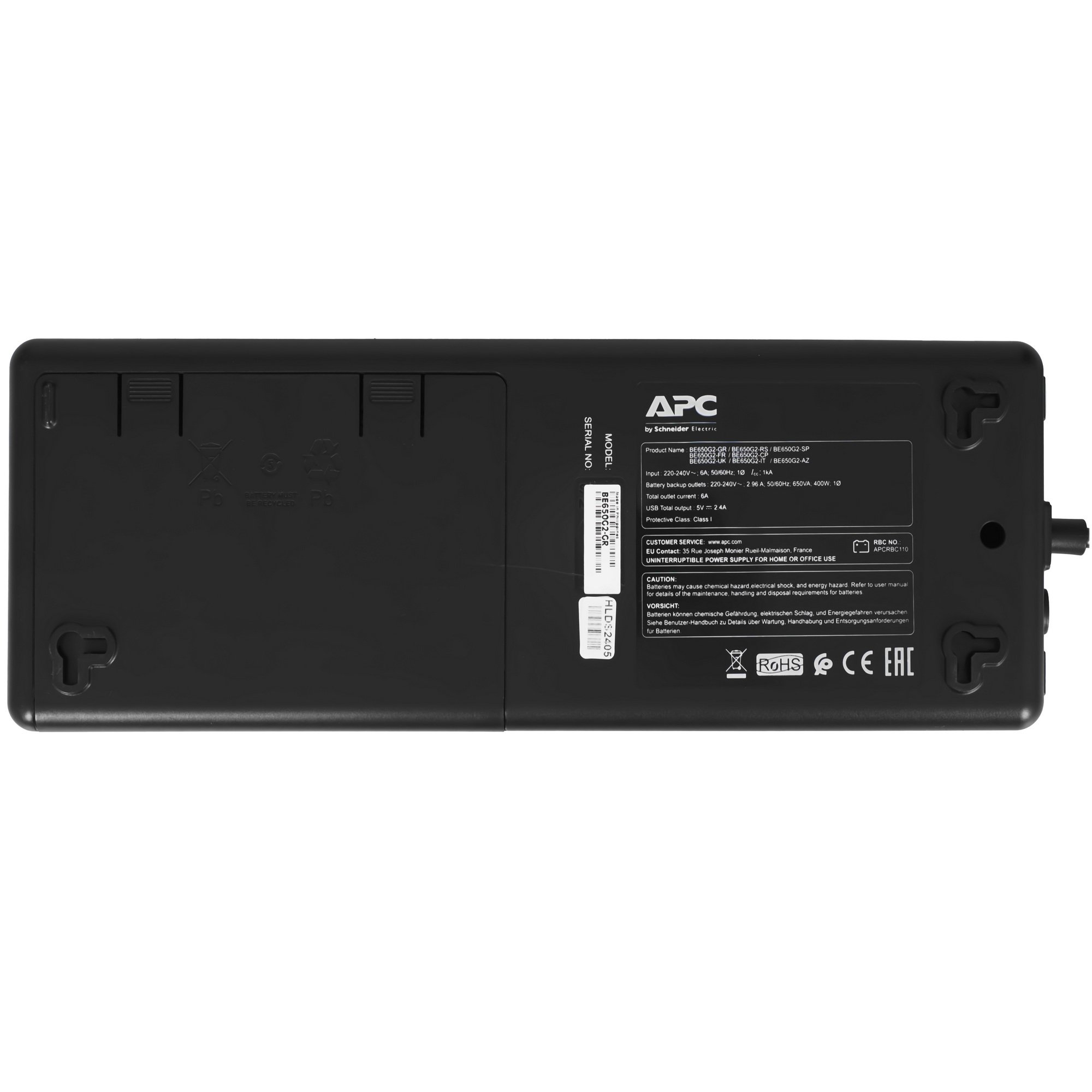 Линейно-интерактивный ИБП APC BE650G2-GR в черном корпусе предусматривает в конструкции восемь евророзеток для подключения компьютерной, цифровой и бытовой техники, чья суммарная мощность может достигать 650 ВА. При внезапном отключении электричества устройству потребуется всего 6 мс для переключения на батарею, что в случае с компьютером не должно привести в его выключению и потере всех несохраненных данных. В ИБП APC BE650G2-GR используется свинцово-кислотный источник питания емкостью 7 Ач, который выдерживает до 200-300 циклов заряда-разряда. Если батарея вышла из строя, ее можно заменить.