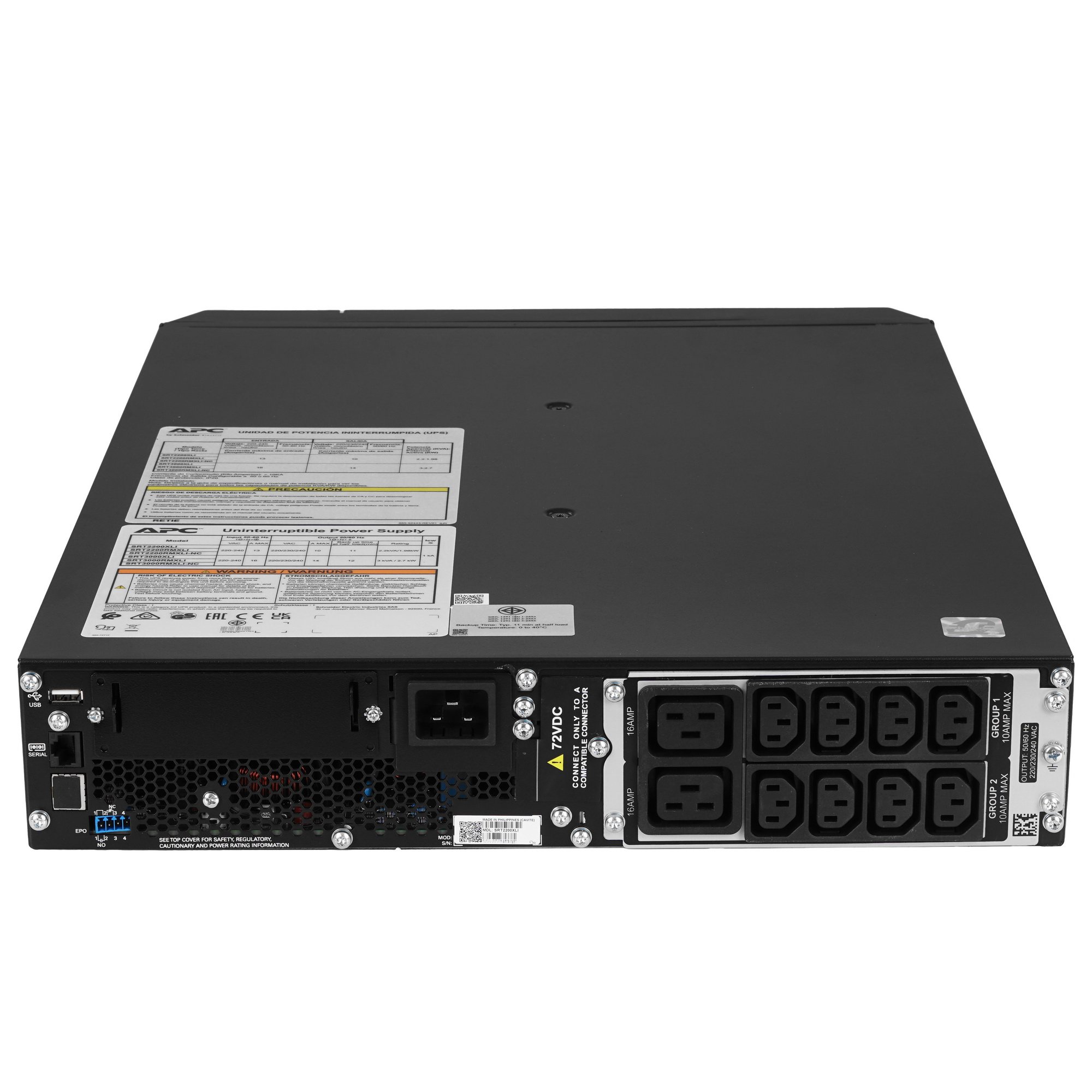 SRT2200XLI обладает уровнем защиты IP20. Это значит, что внутрь ИБП не попадут частицы больше 1.3 см и что он должен находиться в сухом помещении, так как не защищен от влаги. Батареи могут быть заменены в процессе работы без отключения устройства.