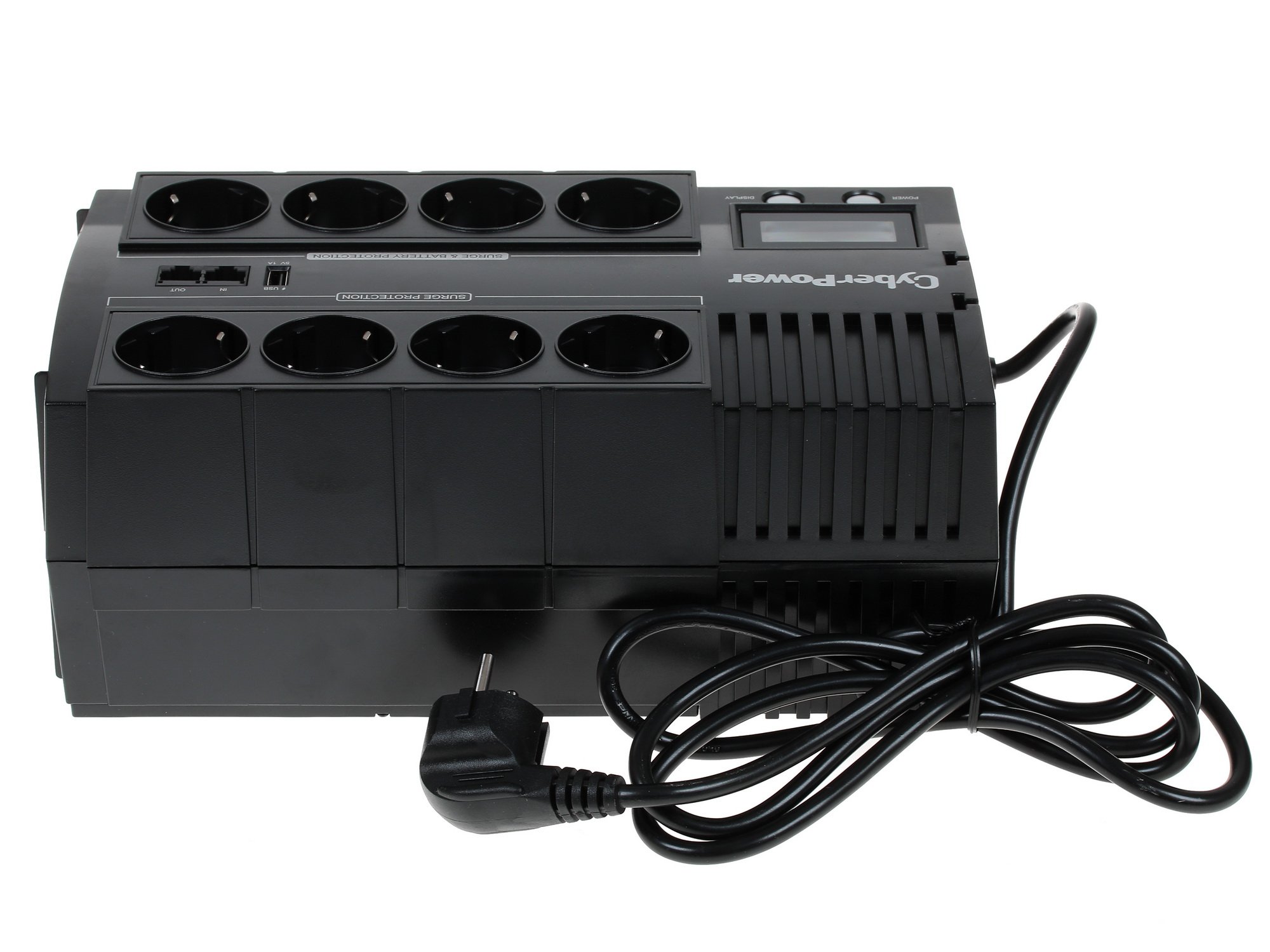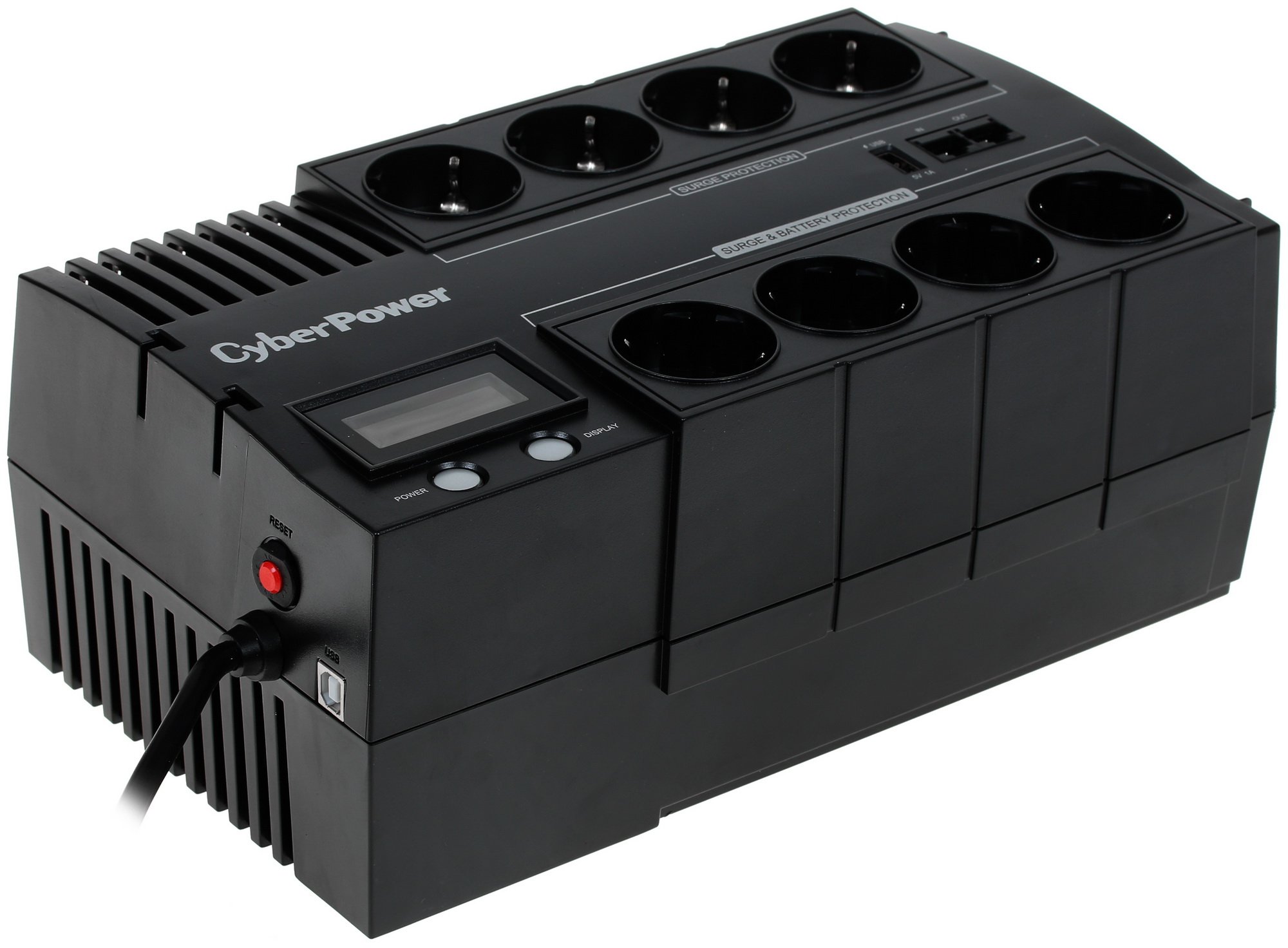 Выходная мощность CyberPower BR1000ELCD составляет 1000 ВА, что в ваттах достигает показателя 600 Вт. Благодаря состоянию кабельной линии устройство позволяет продлить срок работы устройств. Кабели питания устройств можно разместить настолько эффективно, чтобы избежать их переплетения и спутывания. Это позволяет держать рабочее пространство в порядке. ИПБ подходит и для зарядки мобильных устройств, поскольку предусматривает разъем USB.