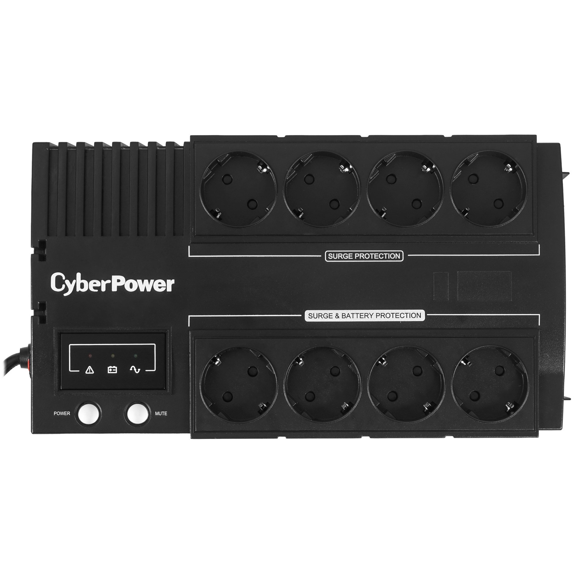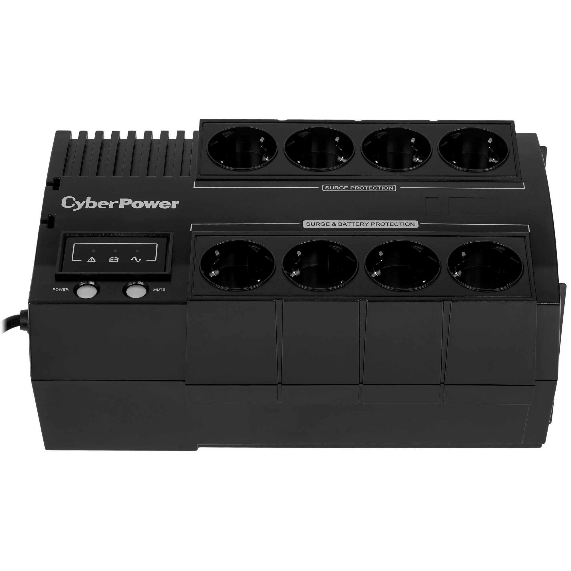 ИБП CyberPower BS650Е NEW отлично справляется с возложенными на него функциями по защите подключенных приборов от перегрузки, высоковольтных импульсов, а также поддержке их в рабочем состоянии сразу же после экстренного отключения электричества. К ИБП можно одновременно подключать до 8 различных единиц техники. Для этого в его конструкции предусмотрены евророзетки, а также интерфейс USB. Визуальный контроль состояния ИБП обеспечивают светодиодные индикаторы на его корпусе.