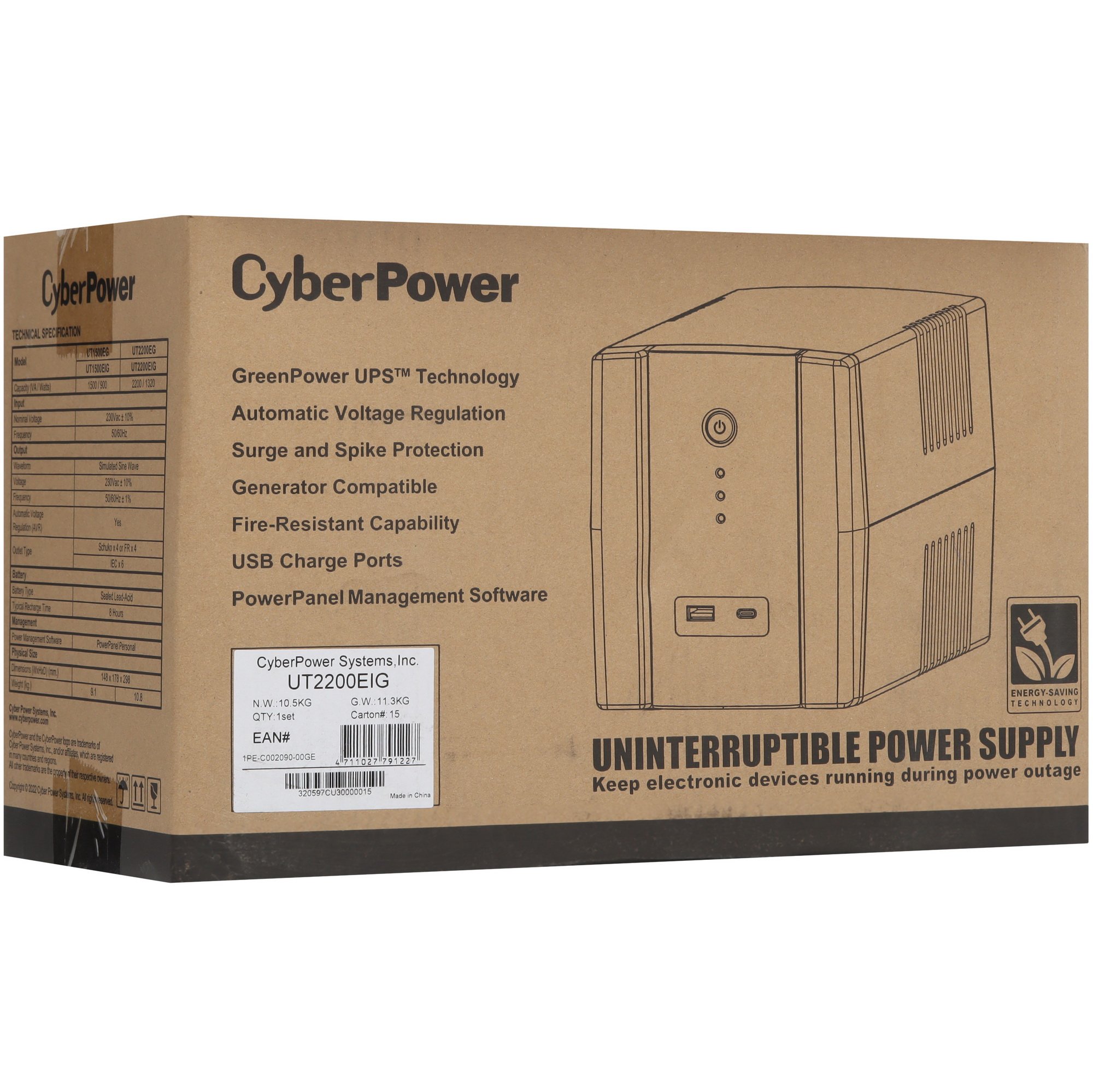 Источник бесперебойного питания CYBERPOWER 1320 Вт 2200 ВА LineInteractive Количество фаз 1 phase UT2200EIG