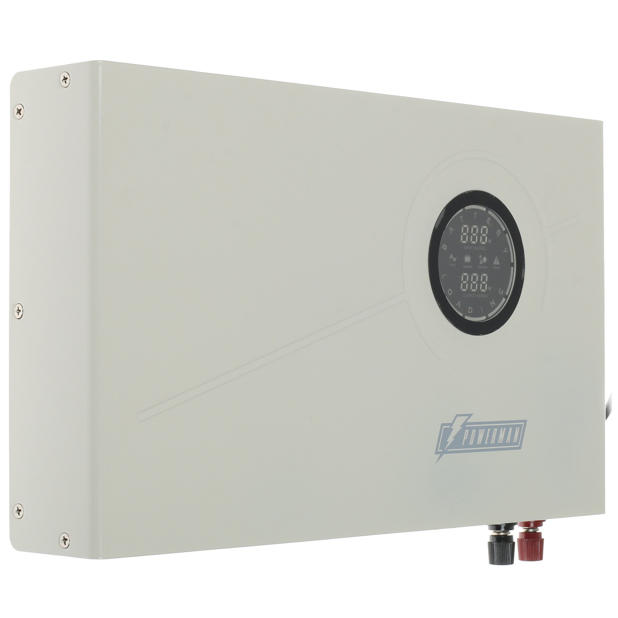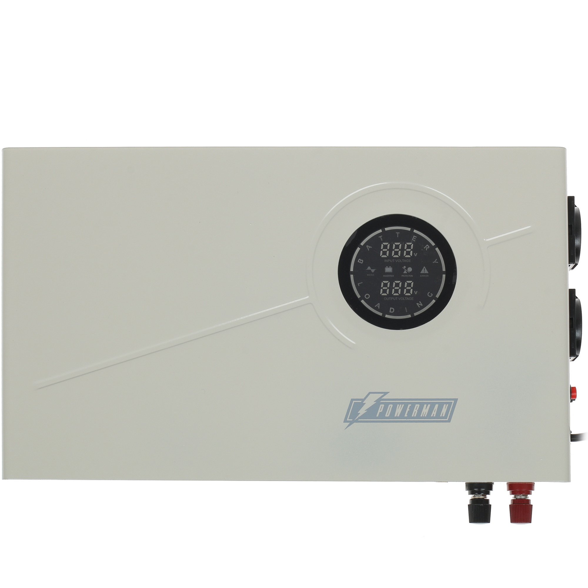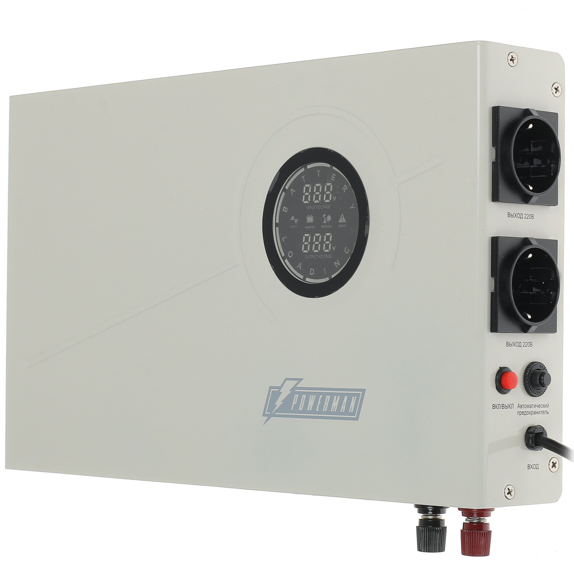 ИБП Powerman Smart 500 INV – устройство линейно-интерактивного типа, облаченное в белый корпус размером 7х26.8х41 см. Оно предназначено для стабилизации напряжения при работе компьютера от электросети и его защиты от короткого замыкания, перенагрузки, высоковольтных импульсов. Функционирует модель с мощностью 300 Вт. В конструкции устройства предусмотрено 2 выходных разъема типа CEE 7/4 (евророзетка) и сухие контакты. Имеется возможность подключения дополнительных батарей. Также необходимо отметить наличие у источника бесперебойного питания Powerman Smart 500 INV ЖК-дисплея для отображения всех процессов.