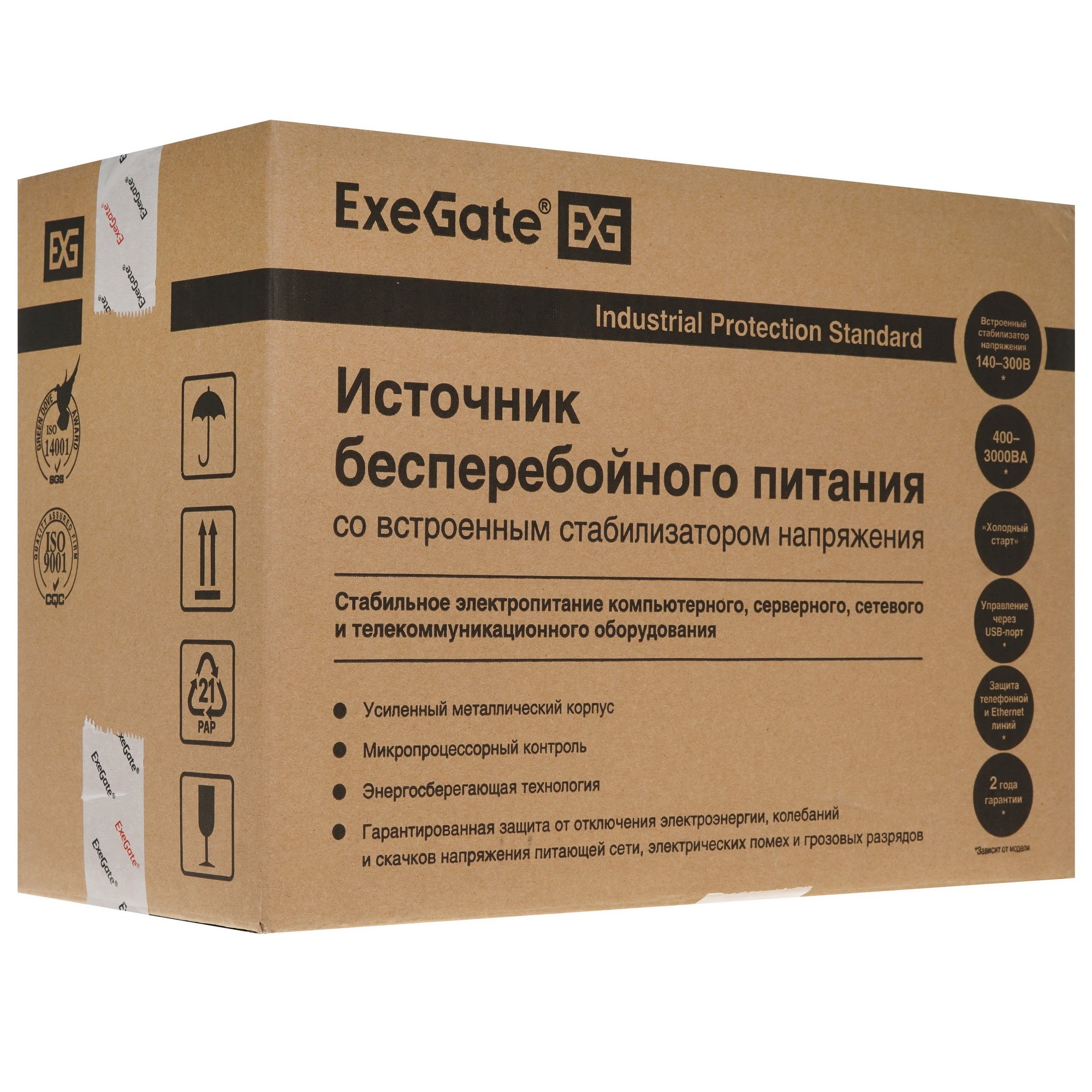 ИБП ExeGate SpecialPro Smart LLB-2200.LCD.AVR.C13.RJ.USB подходит для защиты компьютерного и сетевого оборудования, медицинской техники и других устройств от неполадок в электрической сети. Дисплей LCD позволяет отслеживать параметры работы оборудования. ИБП ExeGate SpecialPro Smart LLB-2200.LCD.AVR.C13.RJ.USB выполнен в прочном металлическом корпусе и обладает полной выходной мощностью 2200 ВА. В оснащение ИБП входят 6 компьютерных розеток, сетевые разъемы RJ-11 и RJ-45, а также порт USB. В конструкции предусмотрены 2 отсека для размещения аккумуляторных батарей для резервного питания.