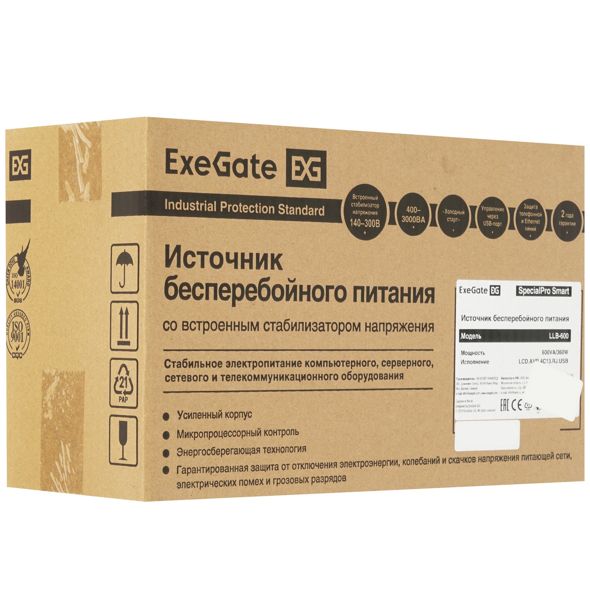 Источник бесперебойного питания ExeGate EP285579RUS SpecialPro Smart LLB-600.LCD.AVR.C13.RJ.USB 600VA/360W, LCD, AVR, 4*IEC-C13, RJ45/11, USB, черный