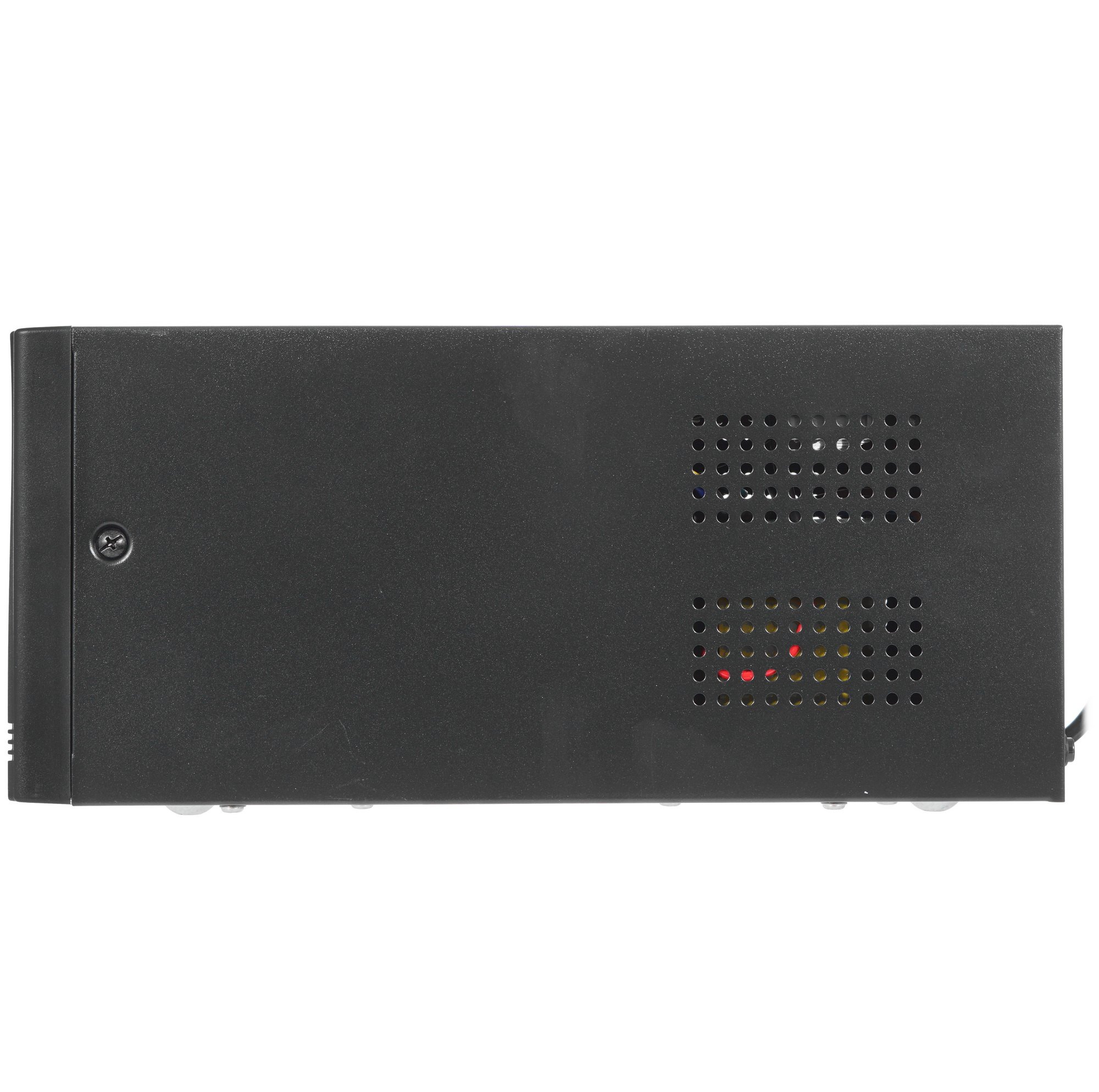 ExeGate SpecialPro Smart LLB-600.LCD.AVR.C13 может сразу подключить четыре устройства через порты IEC 320 C13, расположенные вертикально на задней стороне. LCD-дисплей отображает состояние ИБП, позволяет настраивать его параметры. Благодаря функции «AVR» он сохраняет показатель напряжения в пределах нормы, выравнивая его. Внутри аппарата установлена одна батарея, для переключения на которую он тратит 8 миллисекунд. При максимальной нагрузке она будет работать 1.3 минуты, чтобы вы могли успеть сохранить сведения и завершить работу корректно.