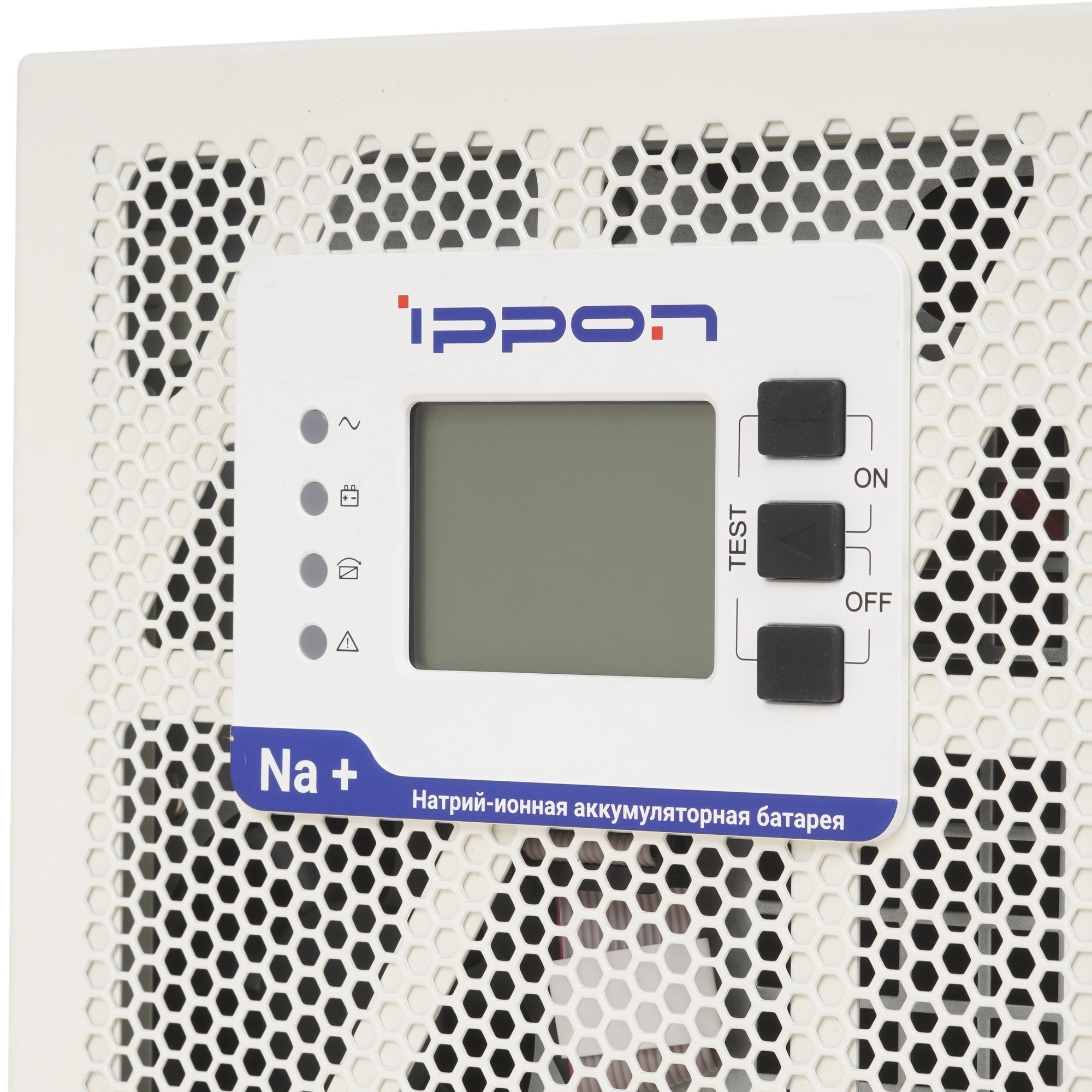ИБП Ippon Na+ TAE 2000 оснащен натрий-ионными аккумуляторами. Благодаря им бесперебойник будет работать автономно в течение 4 минут при нагрузке в 2000 Вт. Батареи рассчитаны на 2000 циклов разрядки/подзарядки. На ЖК-дисплее отображается уровень нагрузки, заряда батареи, а также напряжение. В корпусе есть слот под SNMP-модуль. С его помощью можно контролировать и управлять ИБП по компьютерной сети.