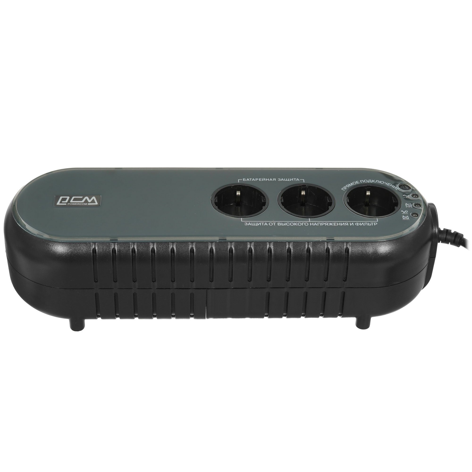 ИБП Powercom WOW-700U представлен в виде устройства резервного типа, которое подает напряжение из сети напрямую к подключенной технике, осуществляя фильтрацию электромагнитных помех, а при необходимости питая ее в аварийном режиме. Для подключения к данной модели используются три евророзетки и один разъем RJ-11 (телефонная сеть). Одна из трех розеток не осуществляет функцию аварийного питания, а только защищает устройство от замыкания и перегрузки.