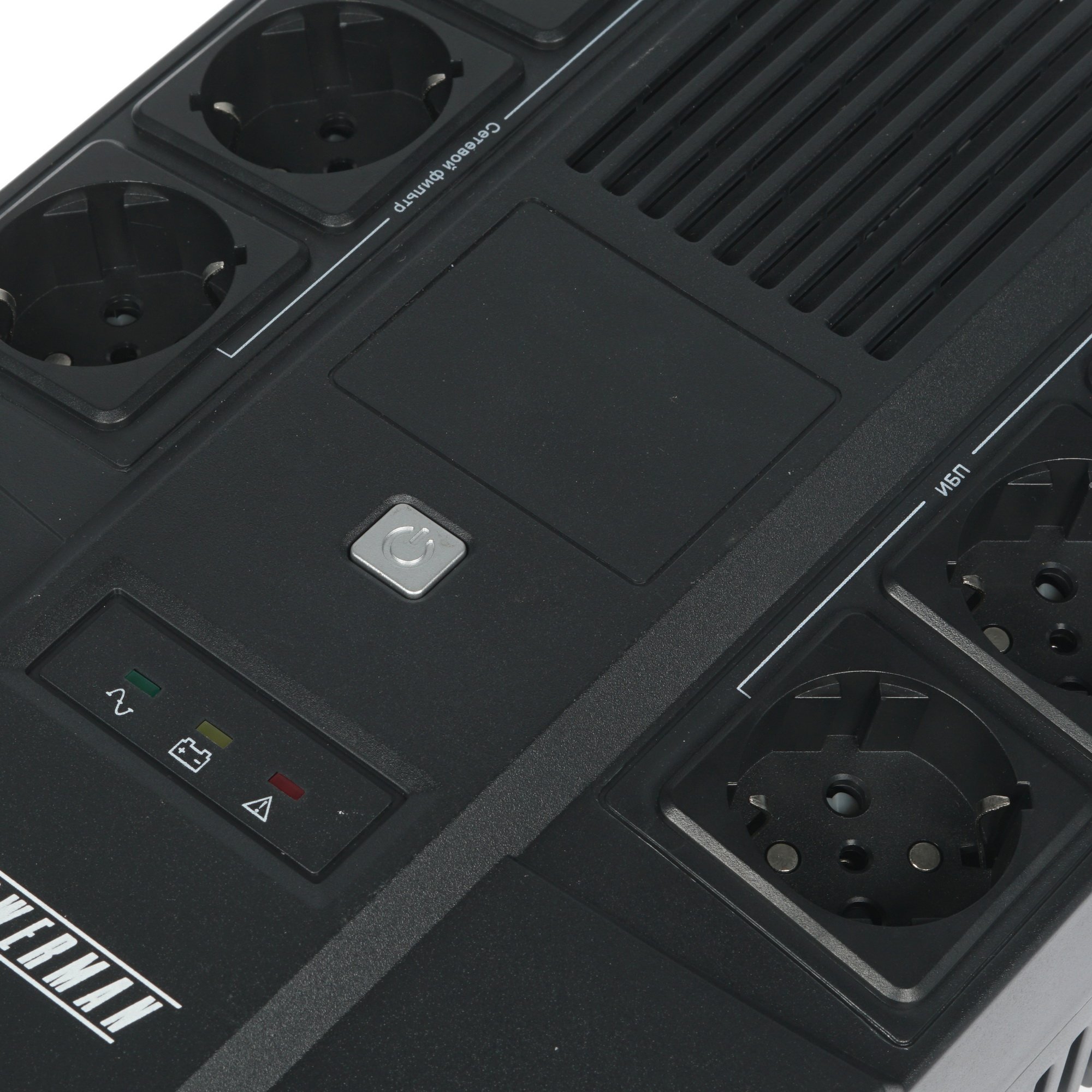 ИБП Powerman BRICK 800 адаптирован для бытового и коммерческого использования. Данное оборудование применяется для подключения компьютерной техники и других устройств. Для их присоединения к питанию используются шесть розеток еврообразца. Из них три разъема поддерживают UPS.