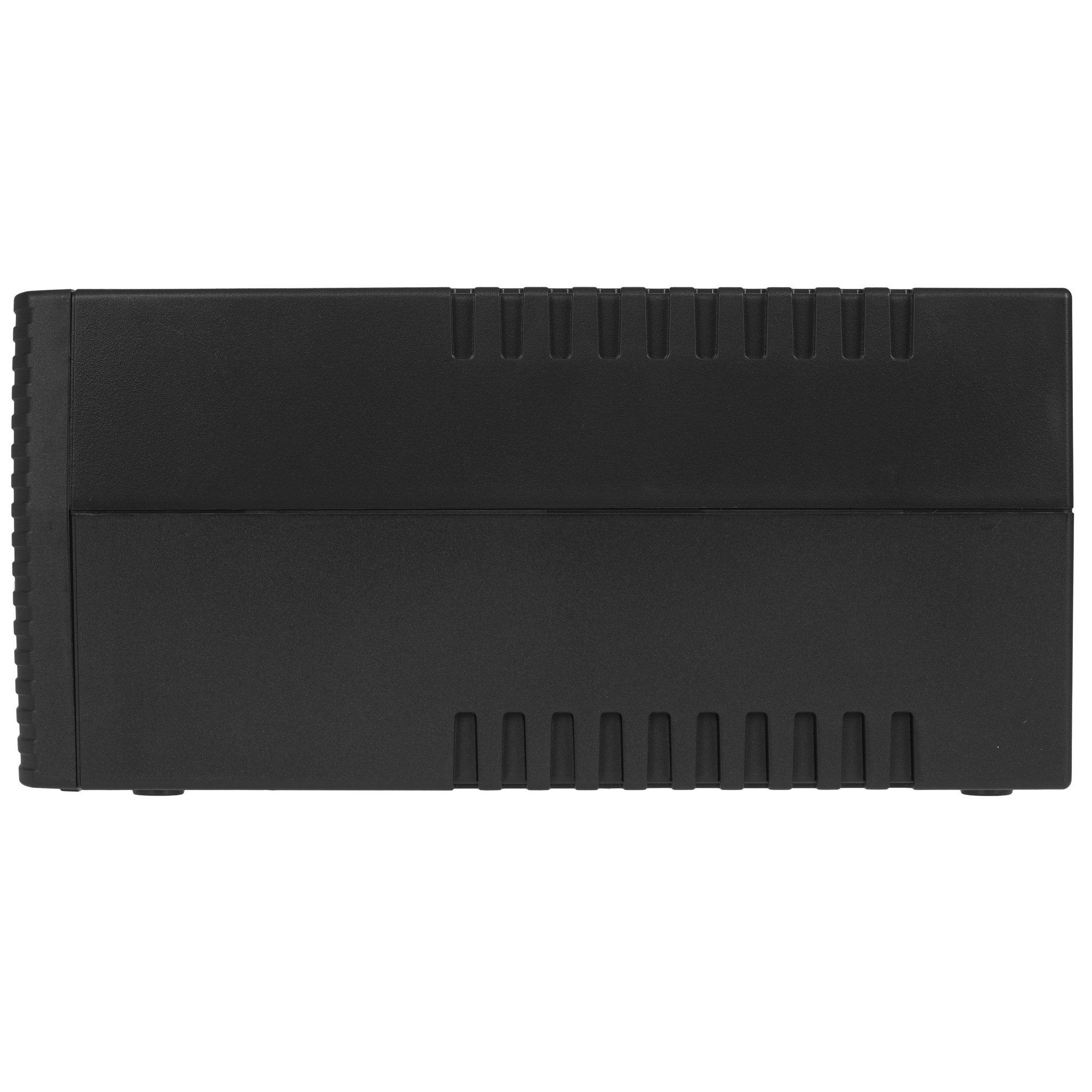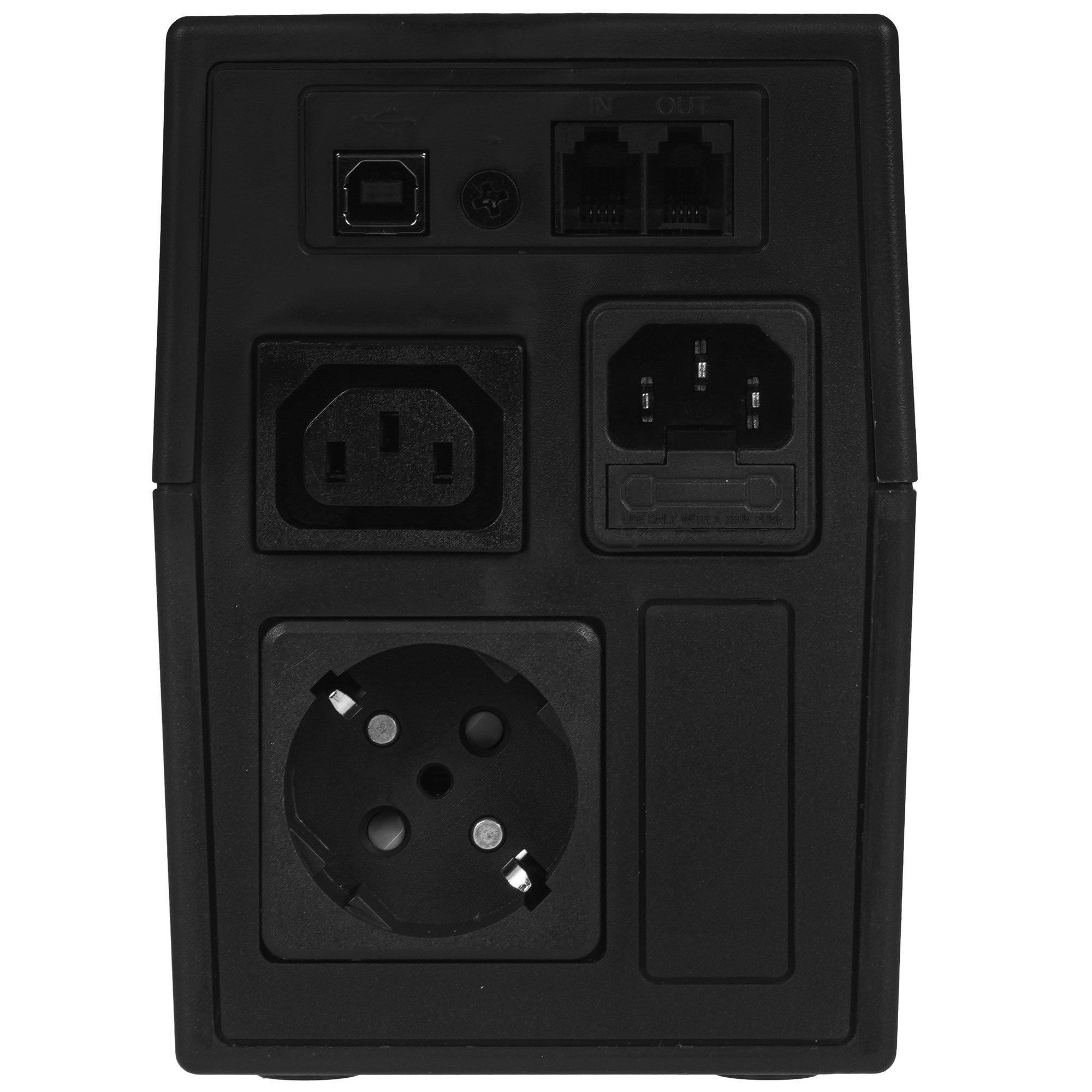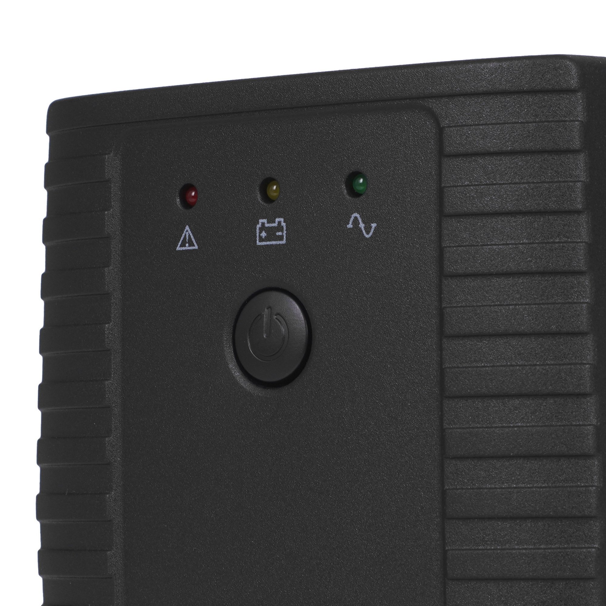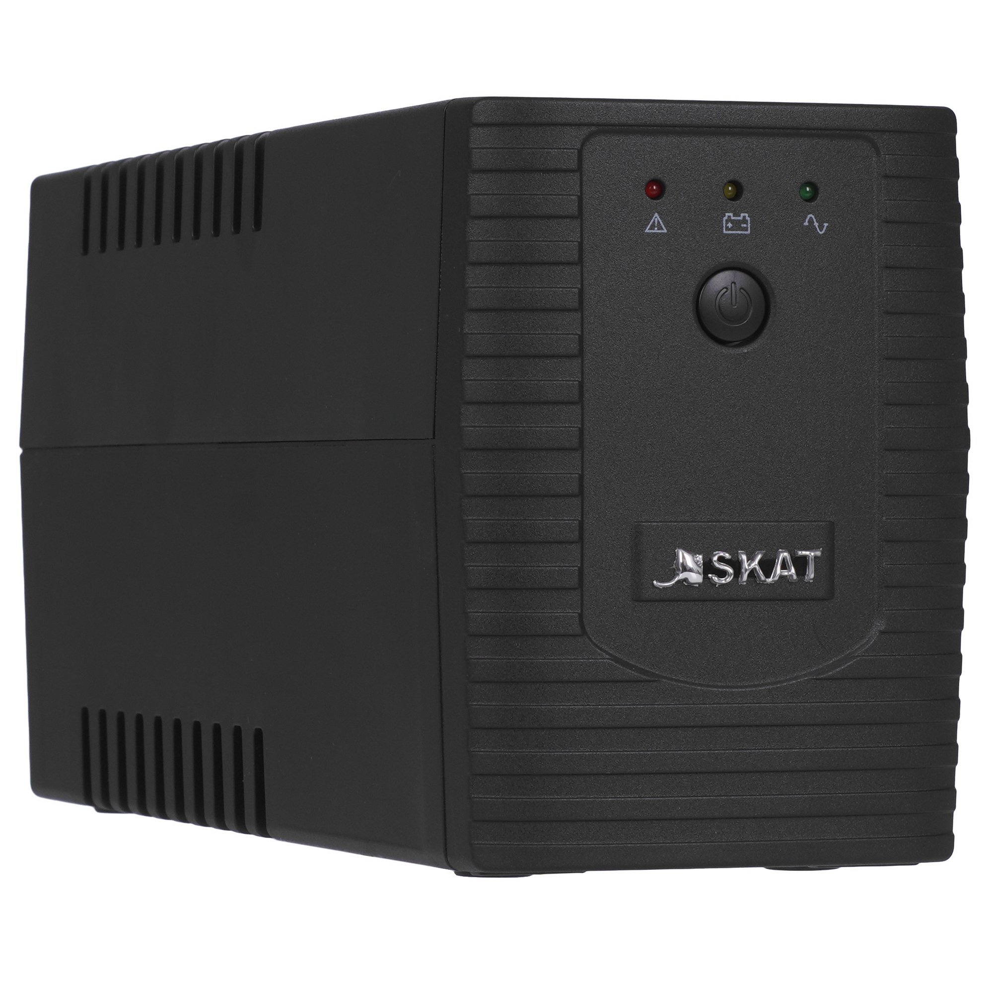 ИБП SKAT-UPS 800/400 предназначен для резервного питания цифровых устройств, которые остались без подключения к электросети. Он имеет черный корпус формата «башня». Полная выходная мощность для этой модели составляет 800 Вт, из которых 400 считаются эффективными. Для безопасности подключенной цифровой техники ИБП защищено от короткого замыкания, низкого напряжения, перегрузки, перенапряжения. В конструкции есть 2 розетки – CEE 7 (евророзетка), IEC 320 C13 (компьютерная), а также разъемы USB и RJ-11. SKAT-UPS 800/400 не боится холодного пуска.