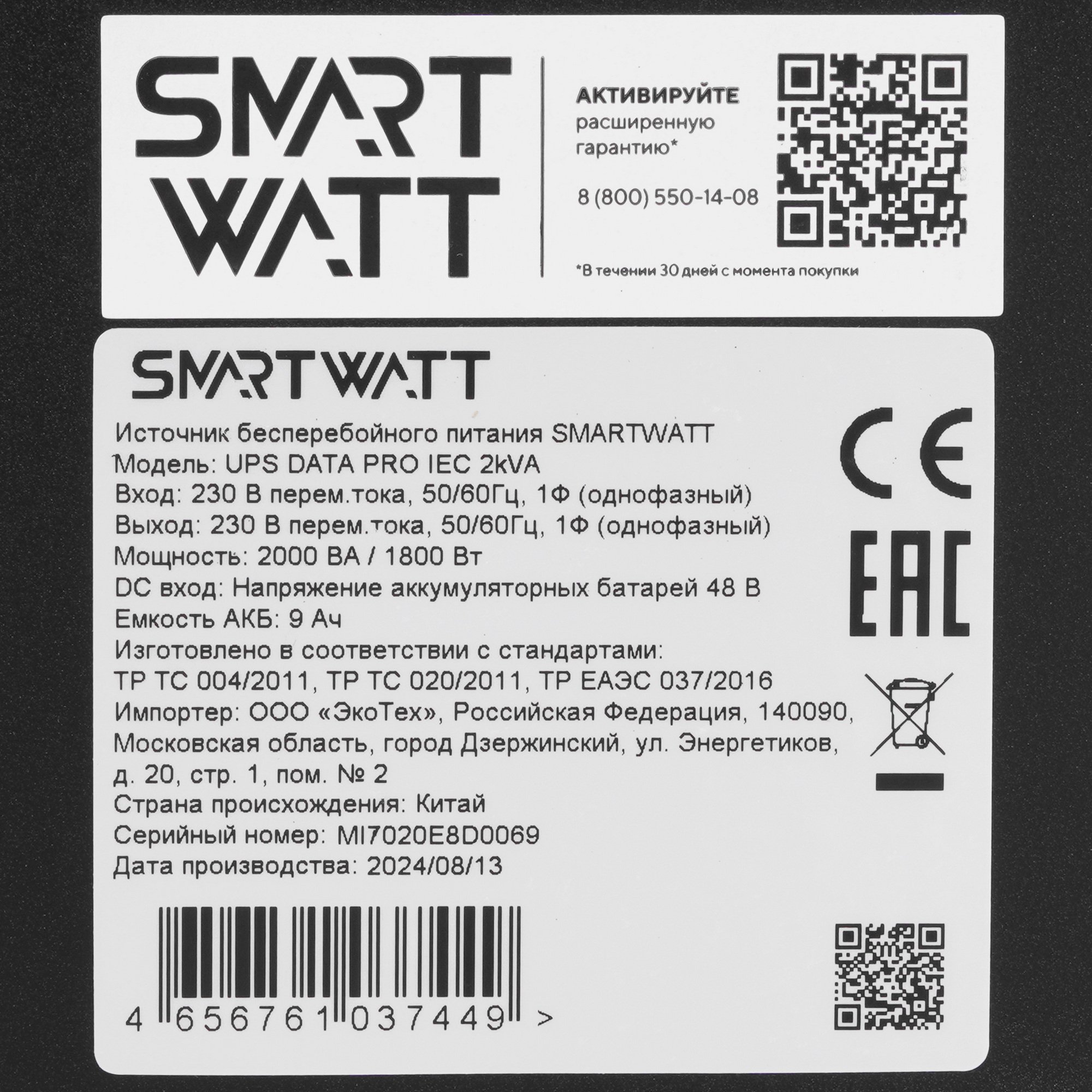 Источник бесперебойного питания Smartwatt DATA PRO IEC 2kVA 1800Вт 2000ВА черный