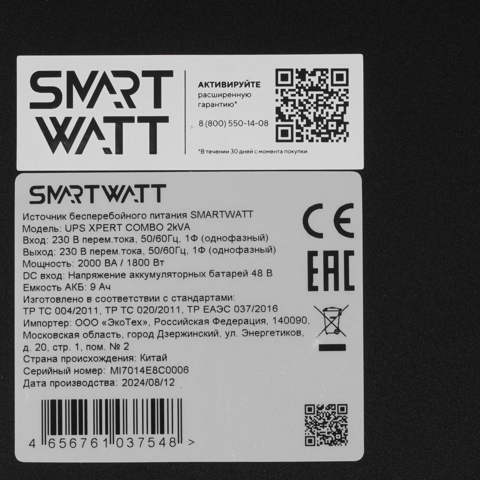 Источник бесперебойного питания Smartwatt XPERT COMBO 2kVA 1800Вт 2000ВА черный