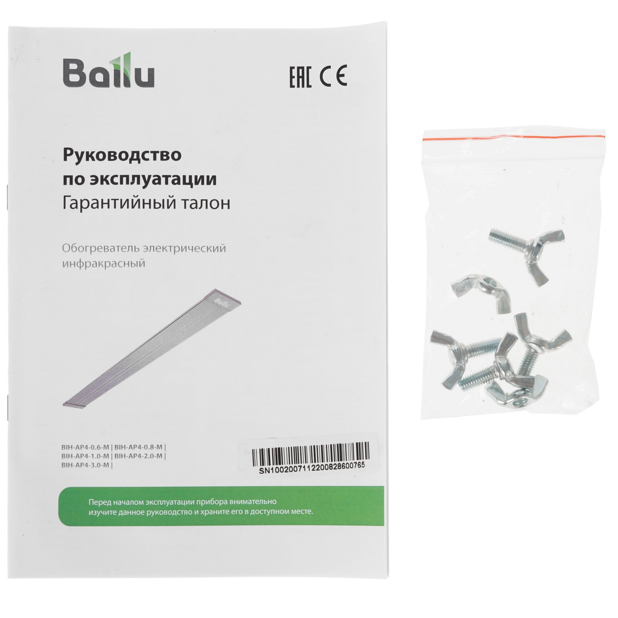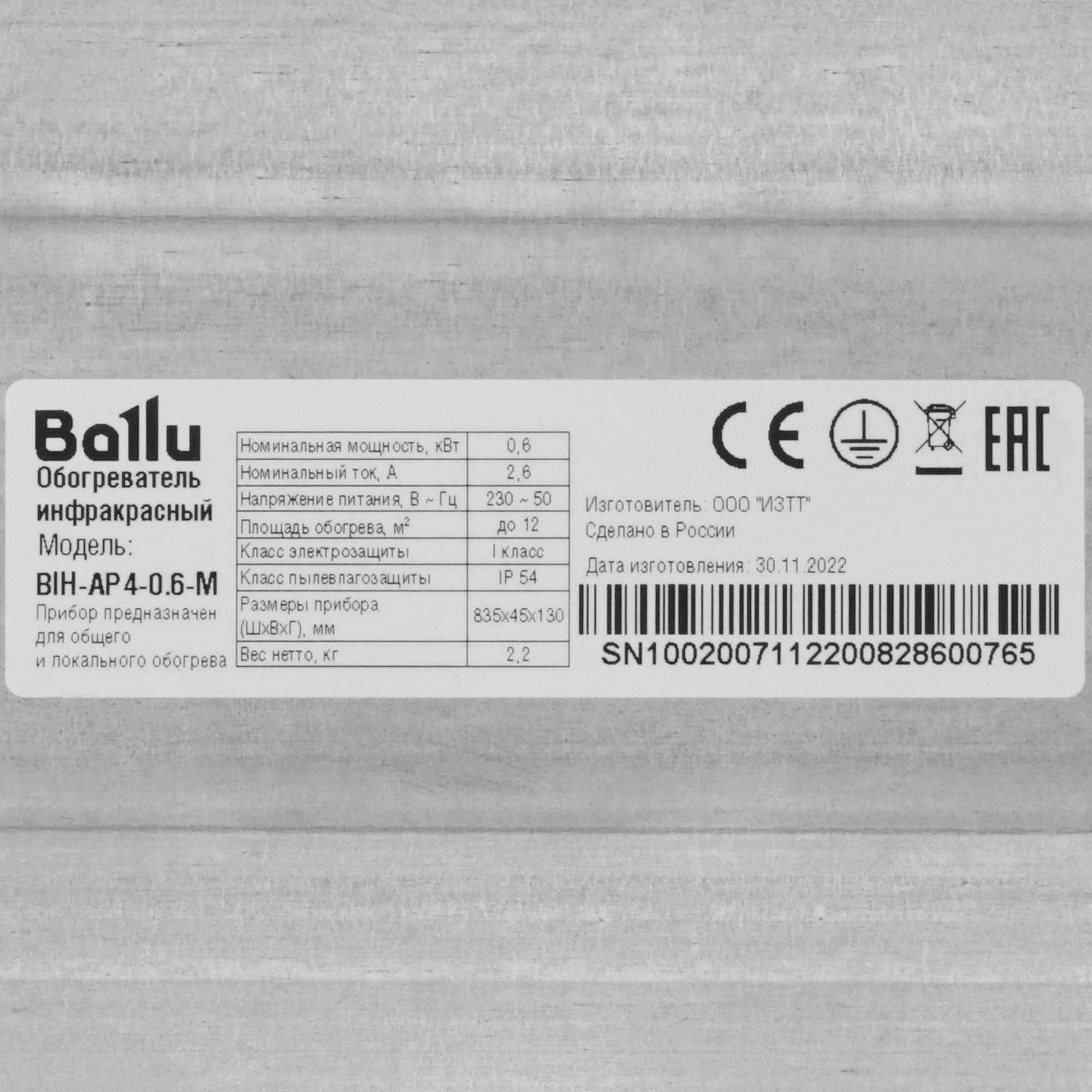 Обогреватель инфракрасный Ballu BIH-AP4-0.6-M серебристый, панельный, 600 Вт, 12 м2