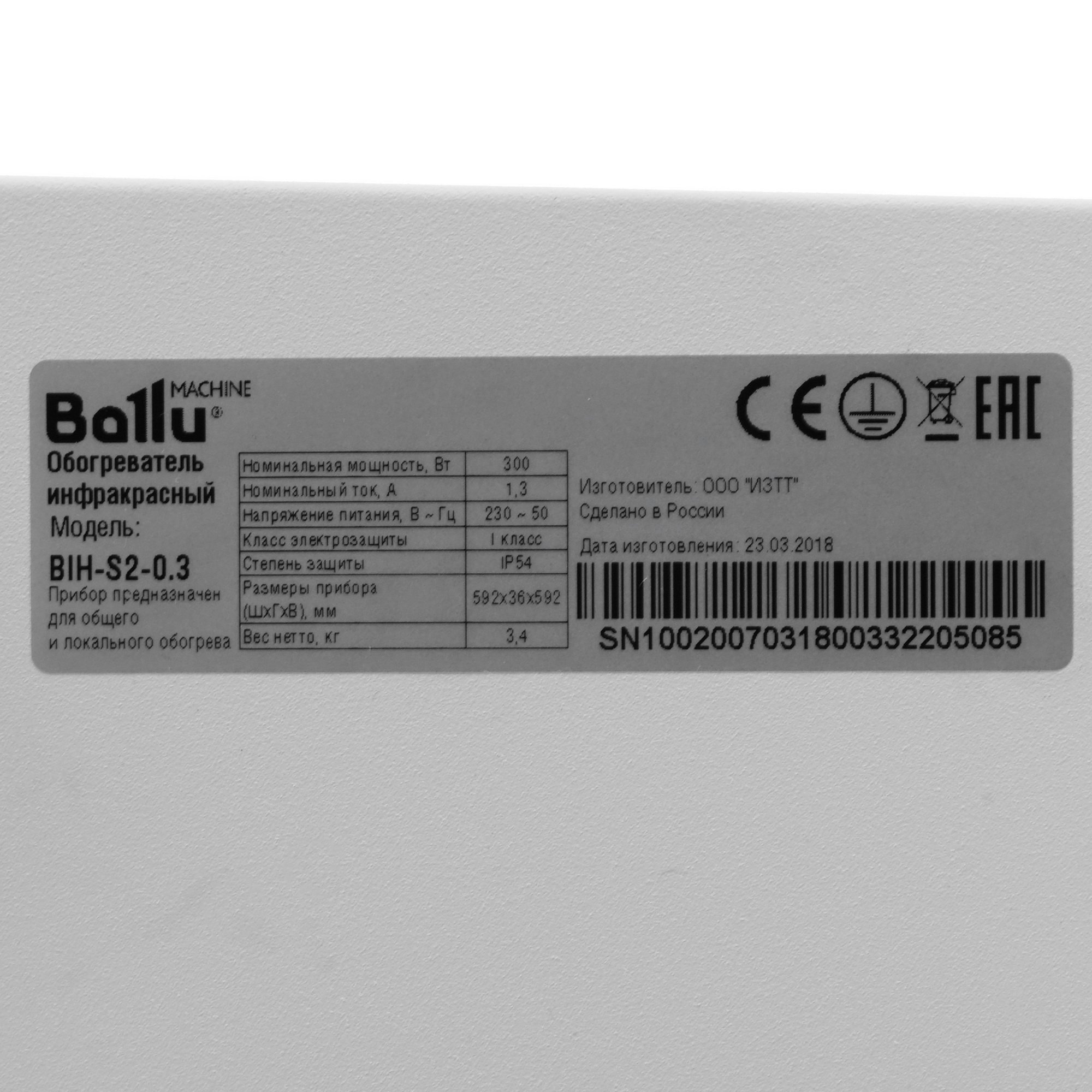 Обогреватель инфракрасный Ballu BIH-S-0.3 / BIH-S2-0.3 белый, панельный, 300 Вт, 3 м2