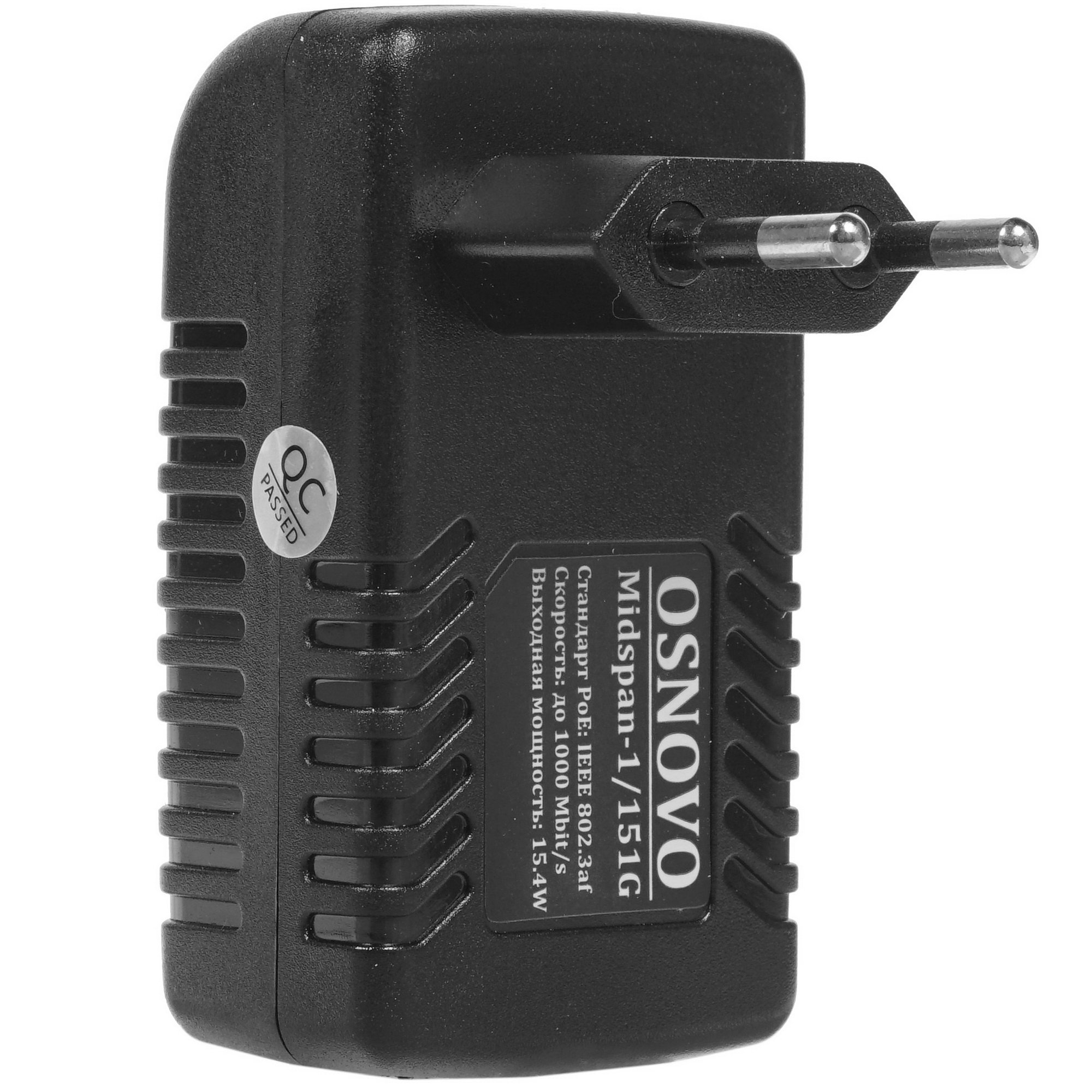 Инжектор PoE OSNOVO Midspan-1/151G поможет обеспечить питание через Ethernet-кабель. Компактный черный прибор вставляется прямо в розетку 220 В. Устройство оснащено двумя портами Ethernet, гарантирующими надежное соединение со скоростью 1000 Мбит/с.