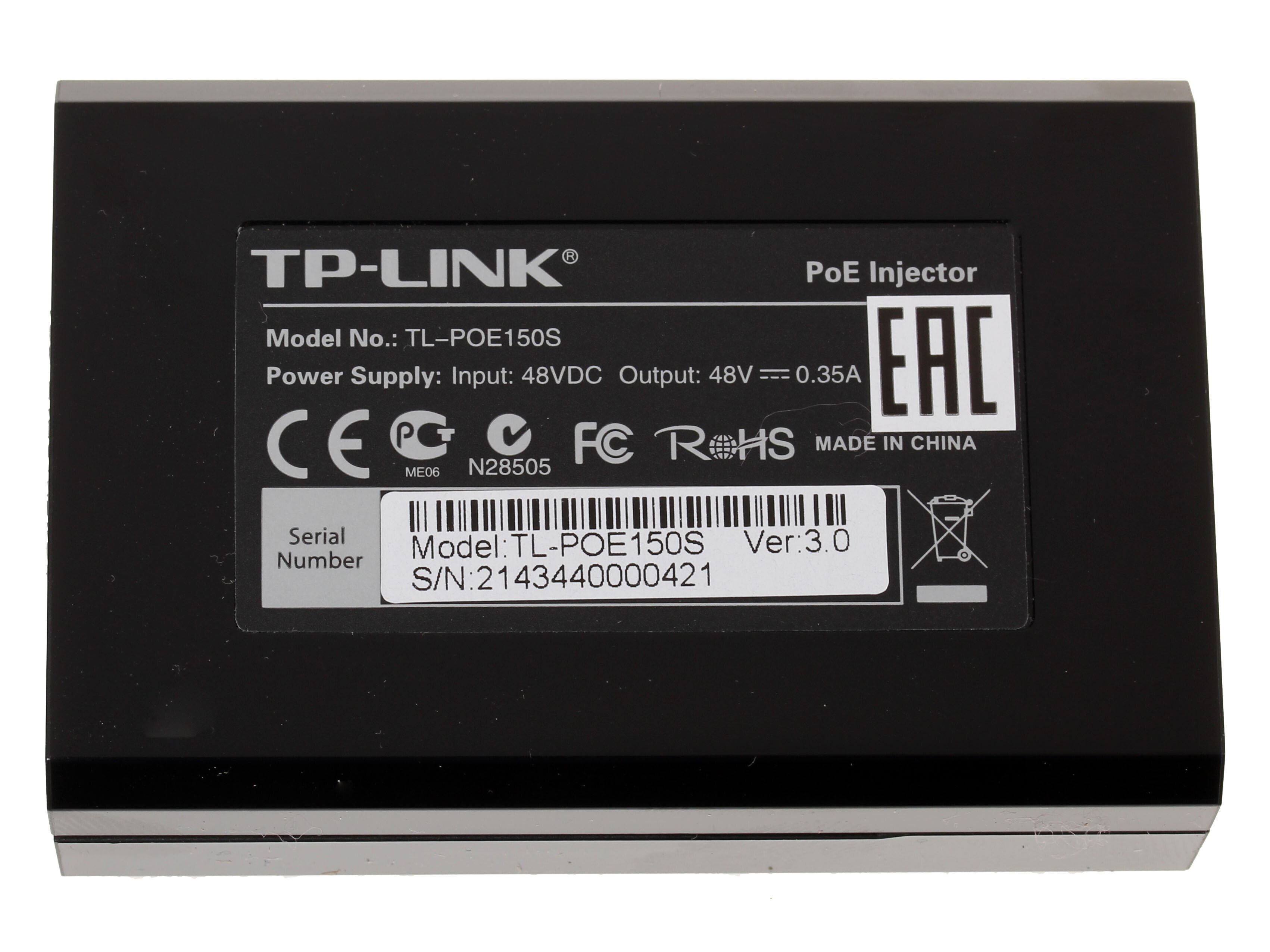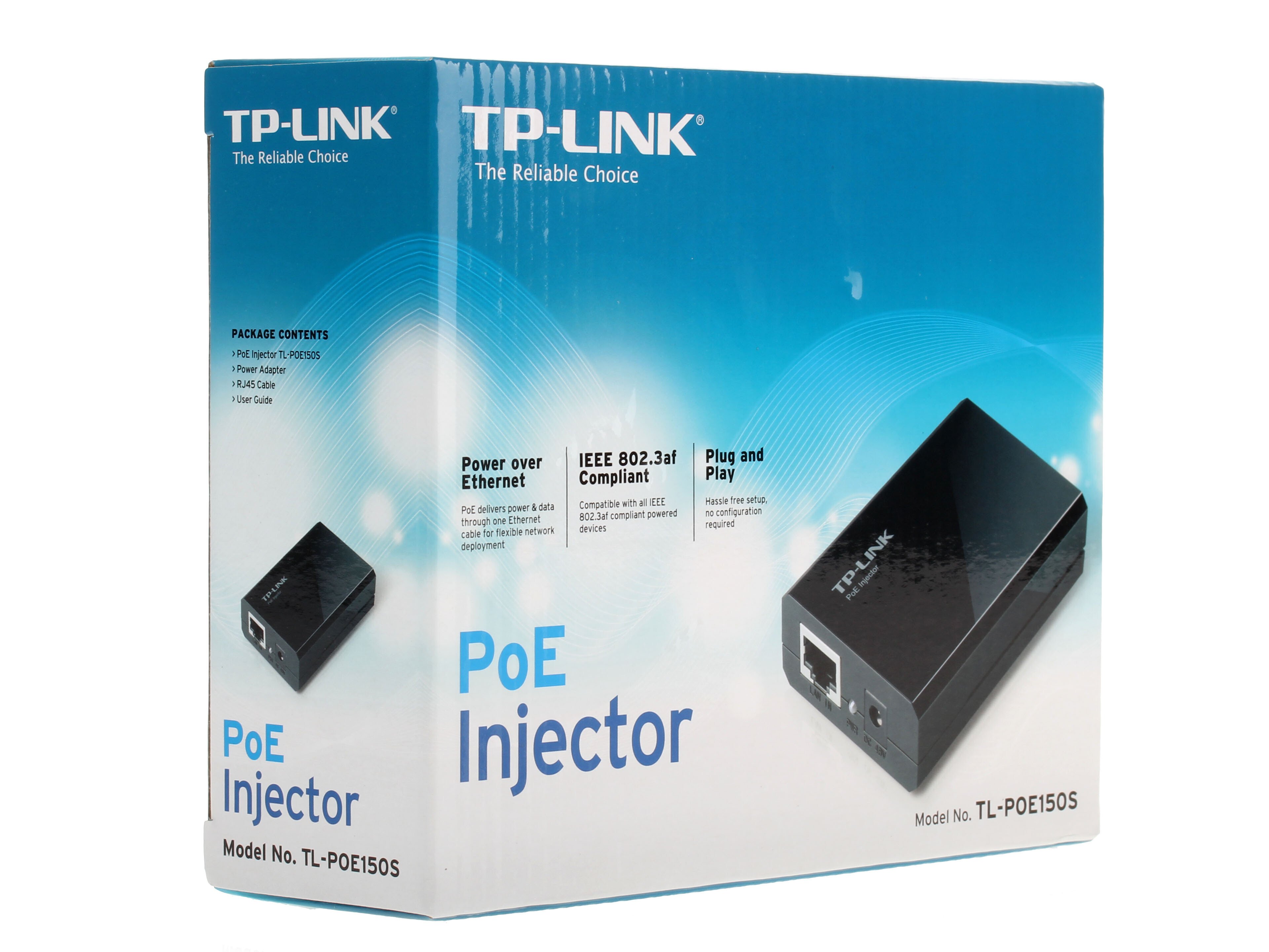PoETP-LINK PoE150S оборудована портом Ethernet со скоростью передачи, равной 1000 Мбит/с. Особенность прибора в поддержке Plug-and-Play, а также в возможности работы с различными сплиттерами, IP-телефонами, IP-камерами и точками доступа. Адаптер демонстрирует свою мощь. Он укомплектован кабелем и блоком питания.