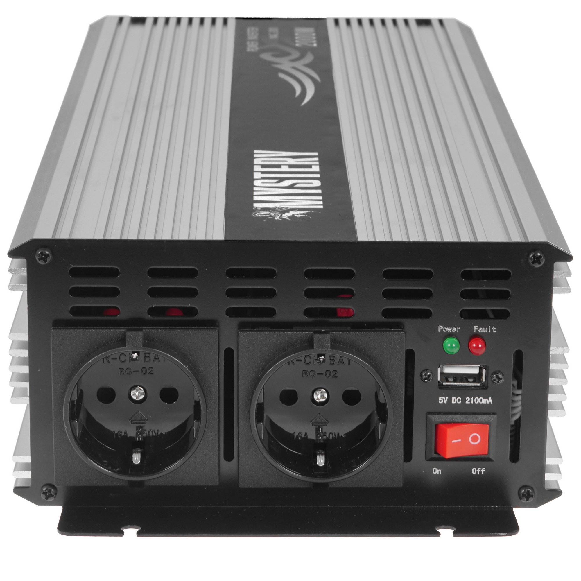 Инвертор MYSTERY MAC-2000 ‒ надежный преобразователь для автомобиля мощностью 2000 Вт. Он изменяет 12 В, подаваемый с аккумулятора, в ток 220 В. Благодаря этому через инвертор можно подключать любые устройства ‒ электроинструменты, чайник, ноутбук, холодильник, мобильную и прочую технику.