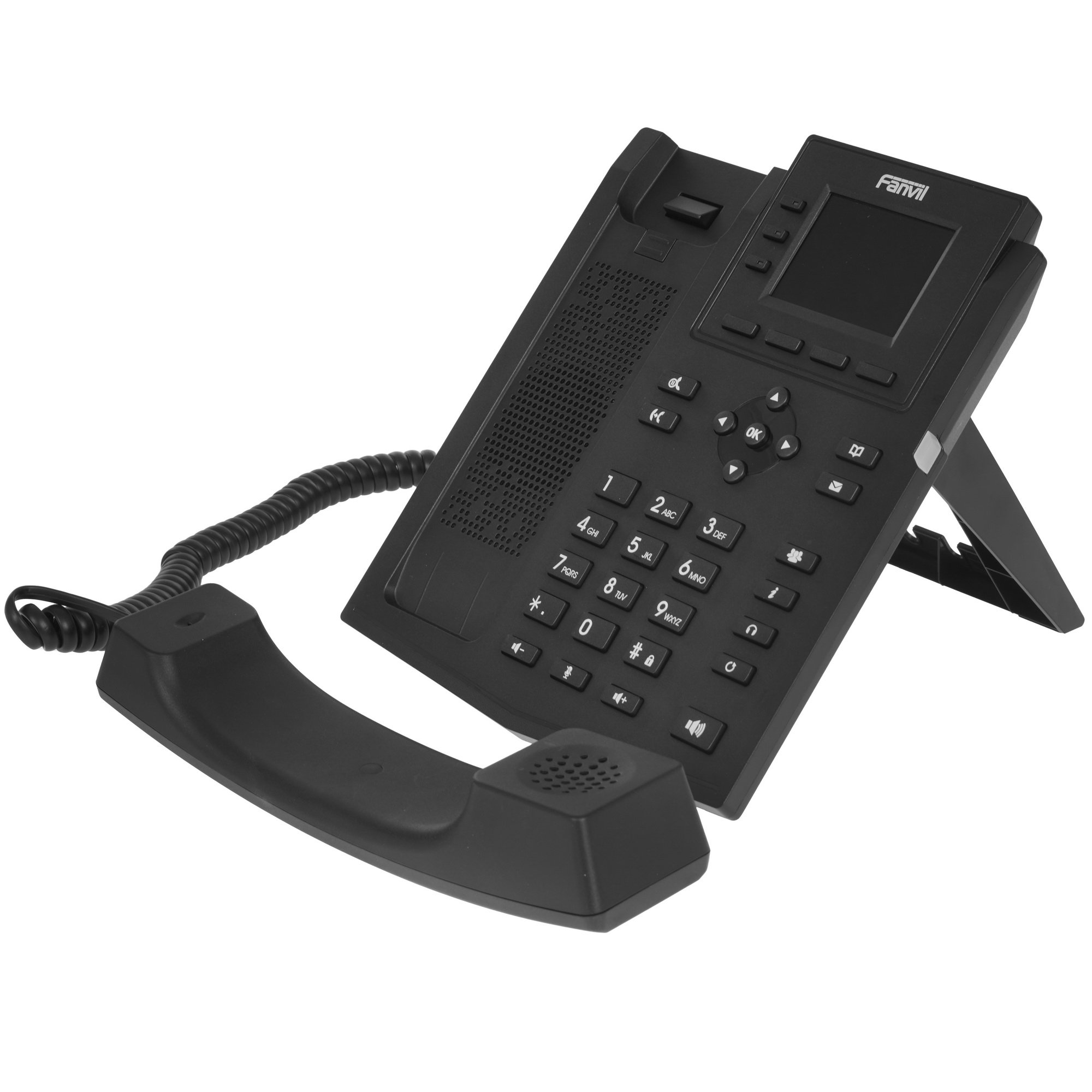 IP-телефон Fanvil X303W предлагает все приоритетные для офисного телефона возможности: автоответчик, анонимный звонок, конференц-связь, голосовые сообщения, горячая линия, интерком, ожидание вызова, а также отключение микрофона, переадресации и другие функции. Аппарат поддерживает до 4 параллельных SIP-линий. Питание телефона можно реализовать от сетевого адаптера или по патч-корду (РоЕ).