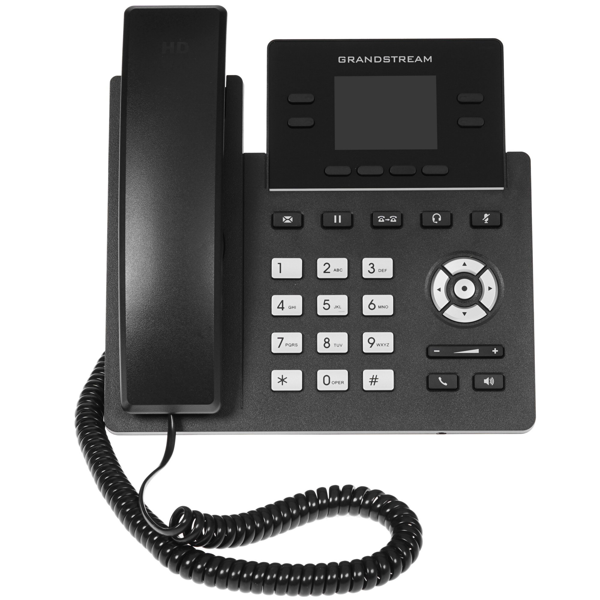 Четырехлинейный проводной телефон VoIP Grandstream GRP2612P располагает поддержкой двух SIP-аккаунтов. Аппарат оснащен 2.4-дюймовым цветным экраном. Модель поддерживает технологию HD audio. Звук высокого разрешения генерируется как в динамике трубки, так и в громкоговорителе. Телефон имеет массу функций, в том числе – конференц-связь, парковку и перехват вызова, автонабор при снятии трубки и автоответ.