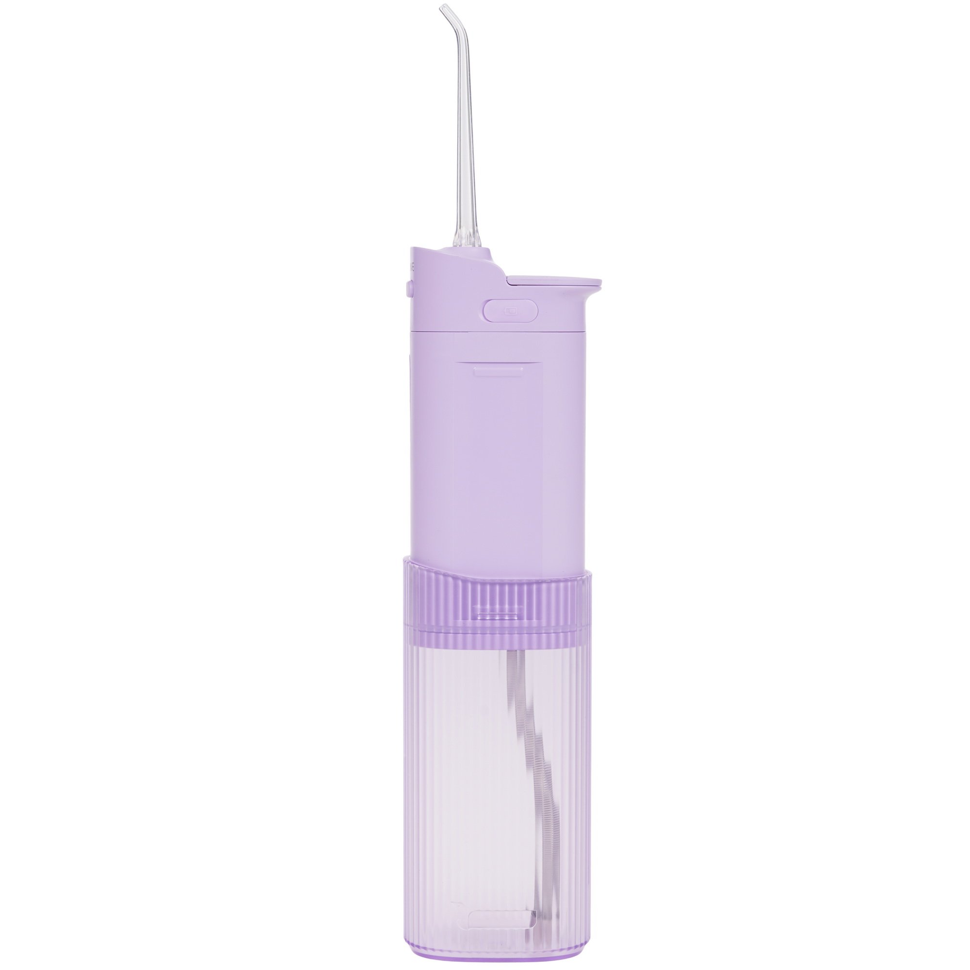 В фиолетовом ирригаторе Revyline RL 840 предусмотрена УФ-лампа, при помощи которой можно выполнить процедуру дезинфекции резервуара для воды. На это уйдет не более 2 минут, после чего лампа автоматически выключится. Благодаря весу всего 220 г и компактным габаритам 6.9x14.1x4.3 см устройство удобно брать с собой в дорогу. При этом его резервуар вмещает в себя 200 мл воды, которой хватит для полноценного ухода за полостью рта.
